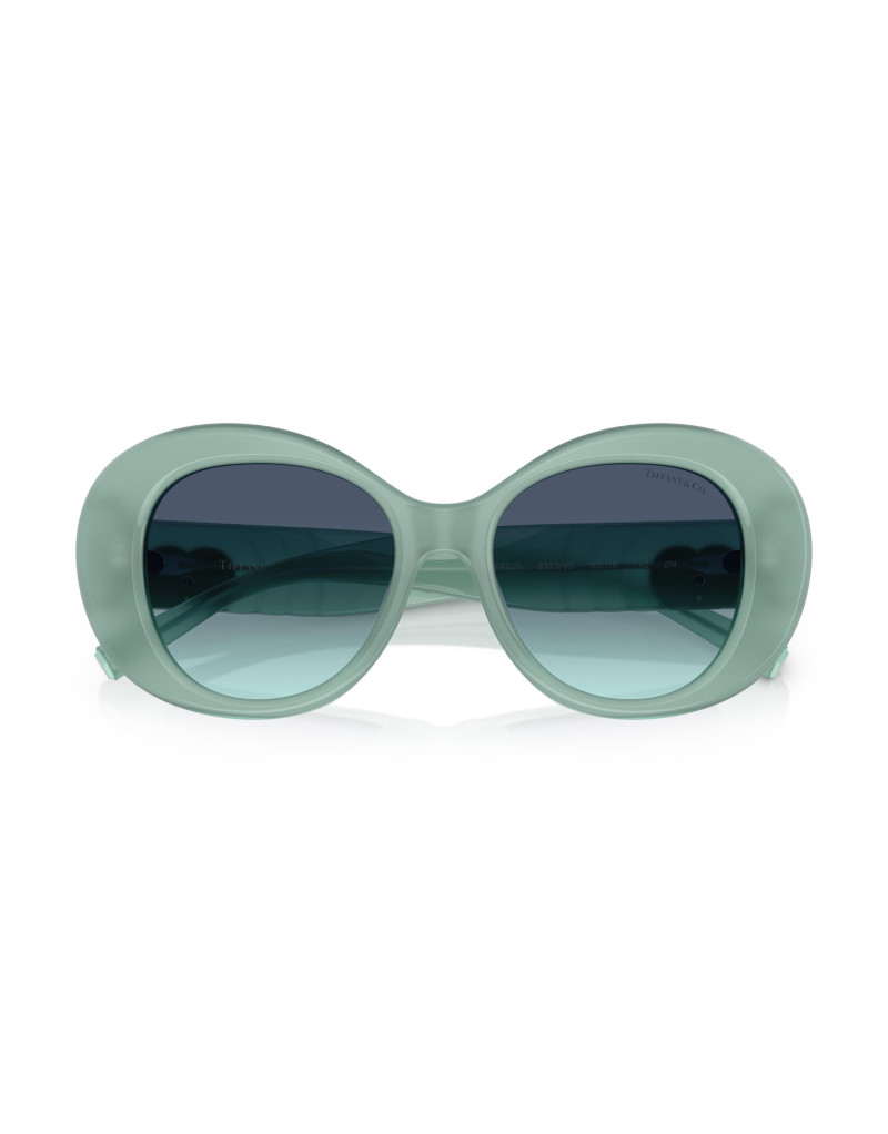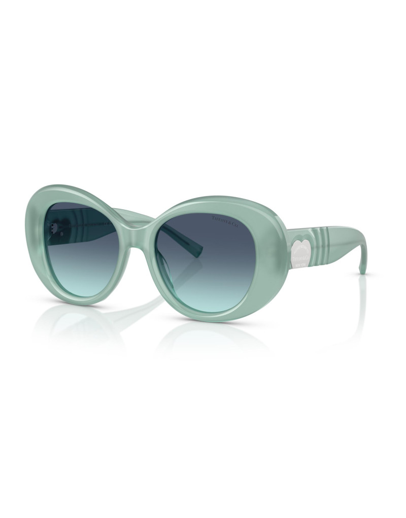 Occhiali da sole Tiffany & Co. dal gusto retrò e forma ovaleggiante. Le aste spesse presentano un effetto ondulato in 3D sono arricchite dall’iconico cuore Return to Tiffany.