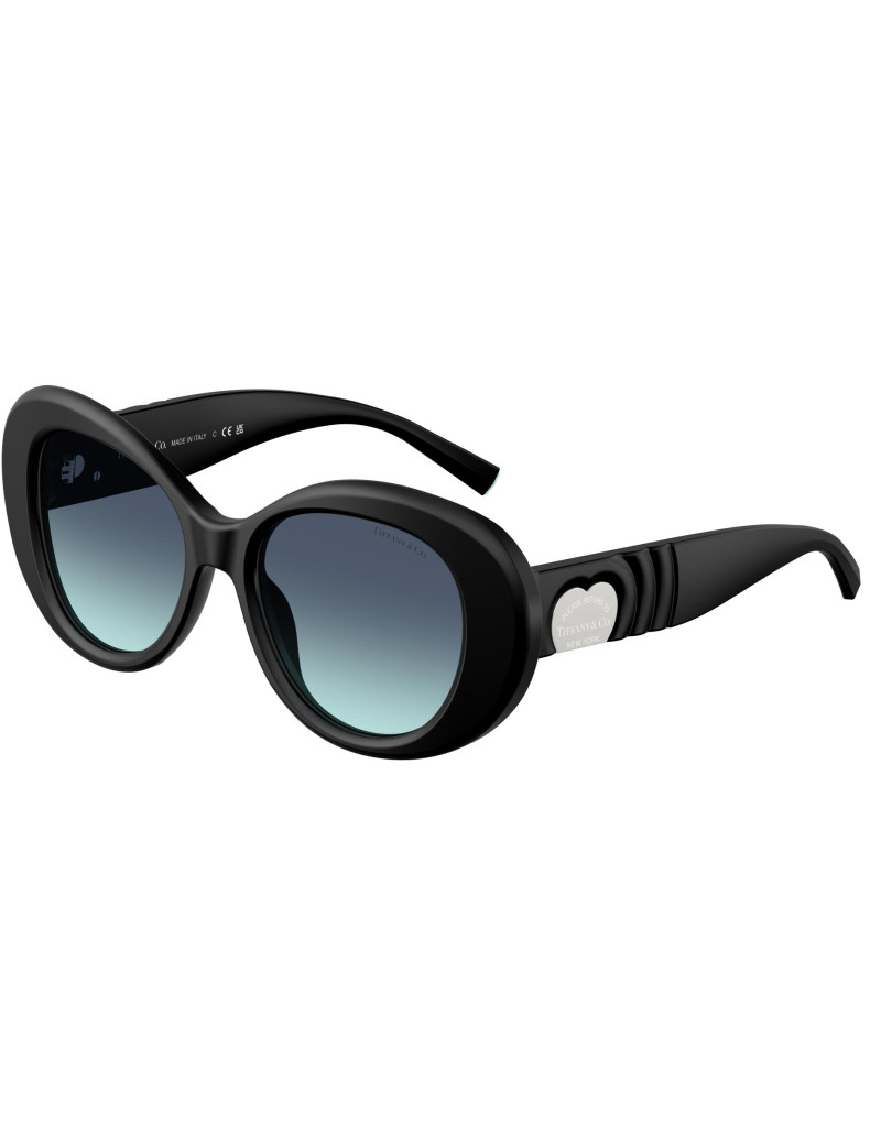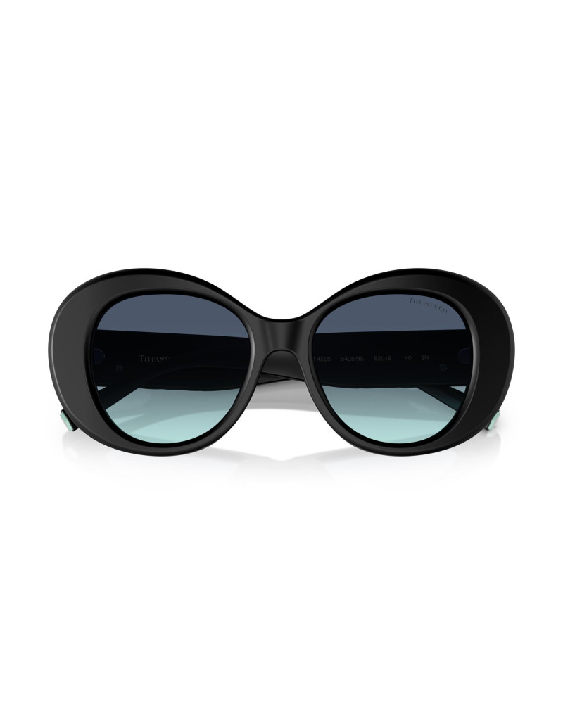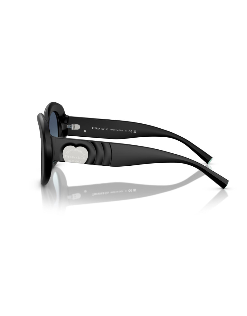 Occhiali da sole Tiffany & Co. dal gusto retrò e forma ovaleggiante. Le aste spesse presentano un effetto ondulato in 3D sono arricchite dall’iconico cuore Return to Tiffany.