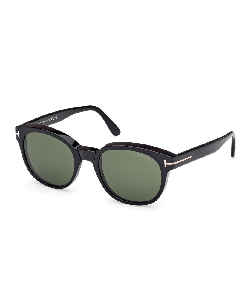 Occhiale da sole da uomo dalle forme arrotondate. Asta media con logo a forma di T.