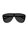 Occhiali da sole Saint Laurent pilot dalle linee fluide caratterizzato da una montatura sottile. Total black anche nel logo,incolore inciso a laser nelle aste. Dettagli metalli sul frontale.