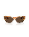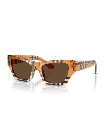 Occhiali da sole Burberry con un sofisticato design cat-eye realizzato in acetato riciclato, che riflette l'impegno per l'ambiente senza rinunciare allo stile. Le aste, che creano un profilo a scudo all’altezza della cerniera, racchiudono al loro interno il logo Burberry in oro, conferendo un tocco di lusso discreto e inconfondibile. Un perfetto connubio di design e tradizione britannica.