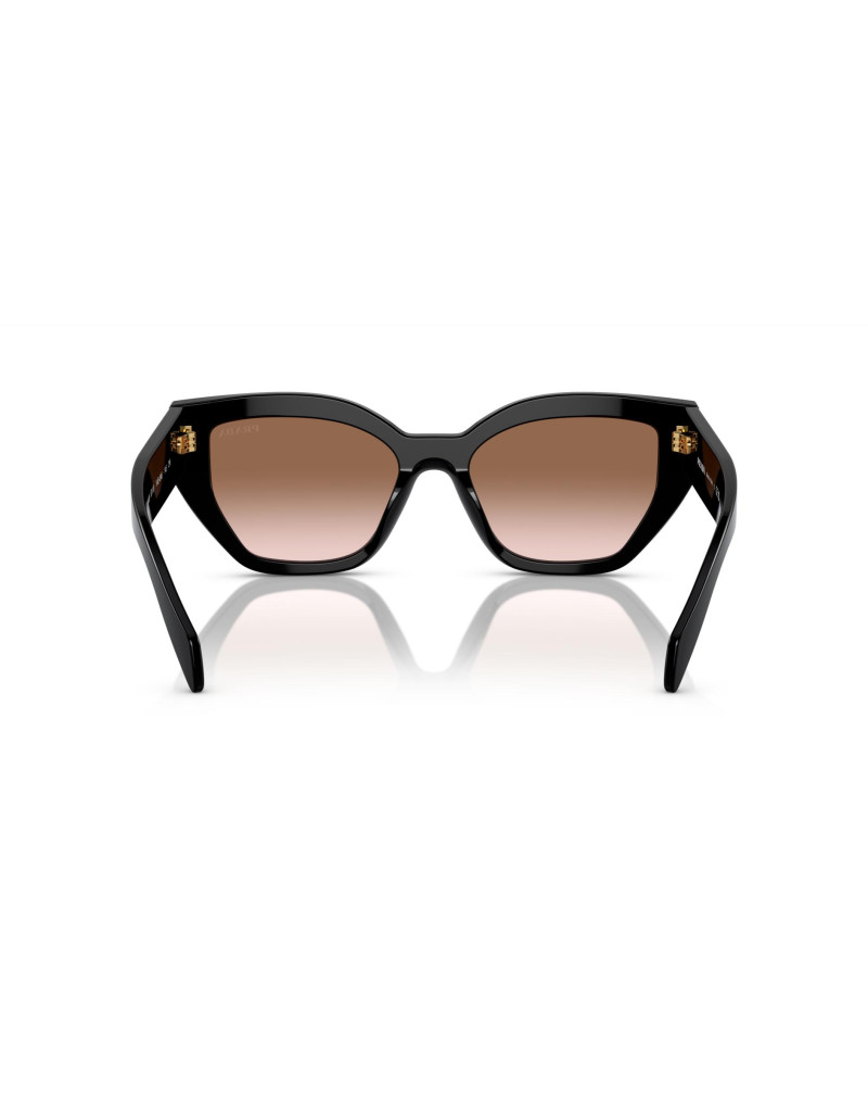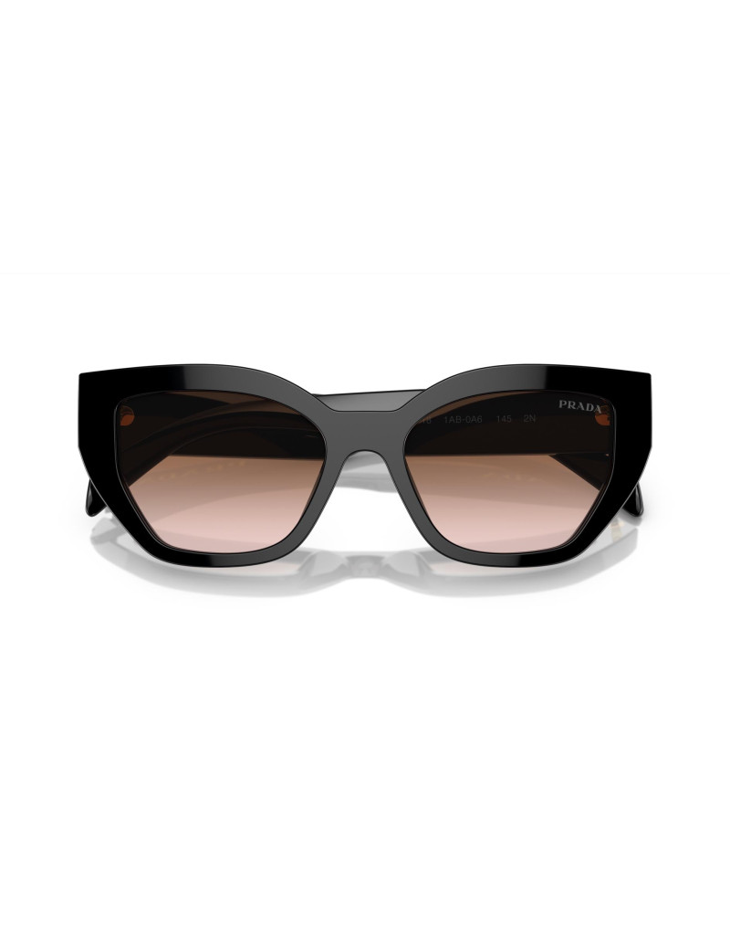 Occhiali da sole Prada da donna con montatura in acetato nero lucido e lenti marroni sfumate. Un design geometrico dalle linee semplici, caratterizzato dalla forma a farfalla e dalla firma Prada in contrasto sulle aste. Un modello originale che conferisce uno stile unico ad ogni look.