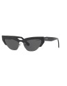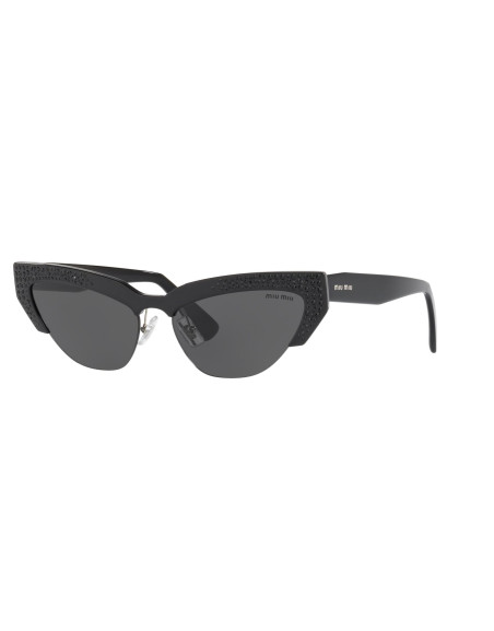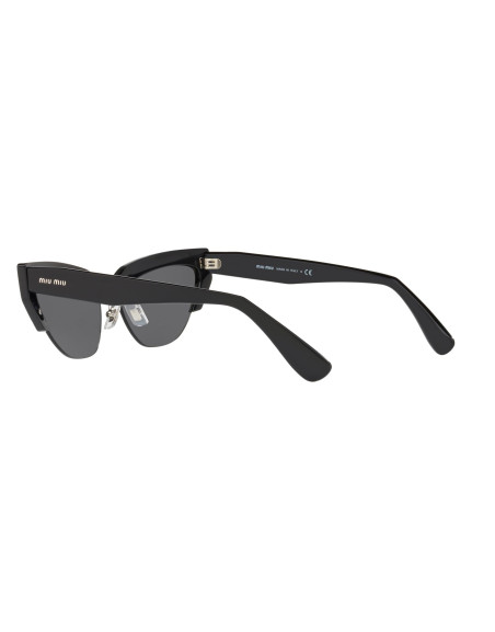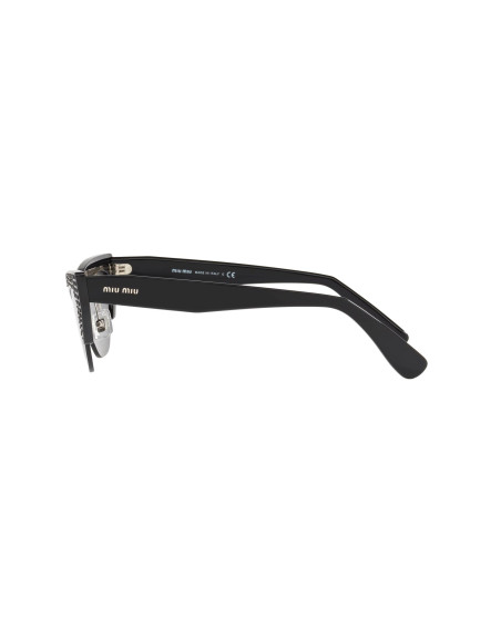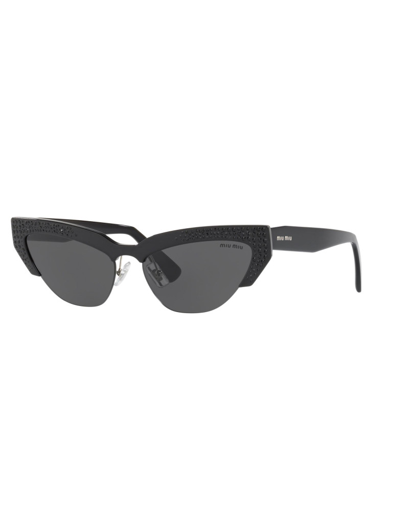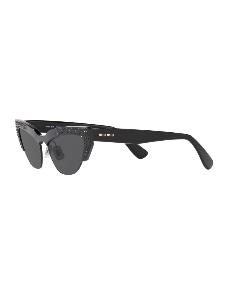 Occhiali da sole Miu Miu da donna con montatura combinata in metallo nero e acetato lucido nero. Un modello cat.eye chic che dona grinta e personalità.
