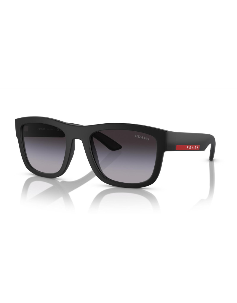Occhiali da Sole Prada Linea Rossa ultraleggeri con montatura in gomma aderente al volto e lente sfumata grigia, per il massimo del comfort visivo e di calzata.