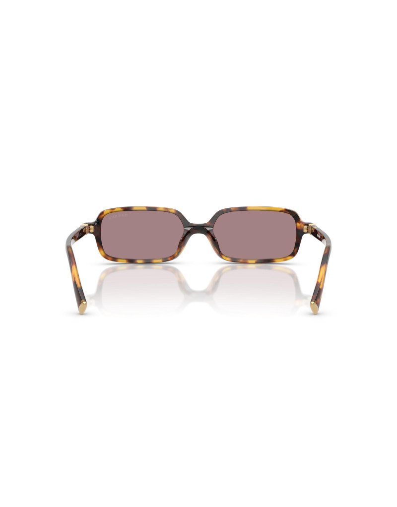 Occhiali da sole Miu Miu da donna con montatura in acetato havana miele. Un modello dalla forma rettangolare con lenti viola chiaro/marrone molto glamour per il proprio outfilt.