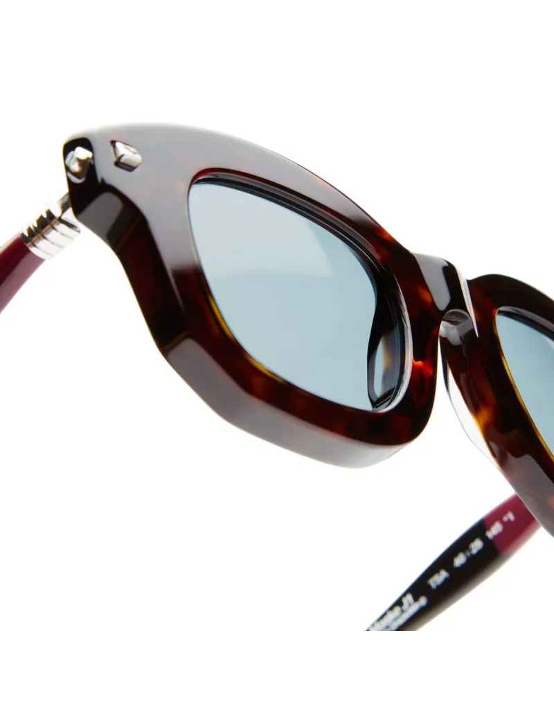 Occhiali da sole Kuboraum in acetato in fantasia tartarugata, garanzia di qualità made in Italy e dalla forma geometrica. Questo modello incornicia con stile lo sguardo di chi li indossa.