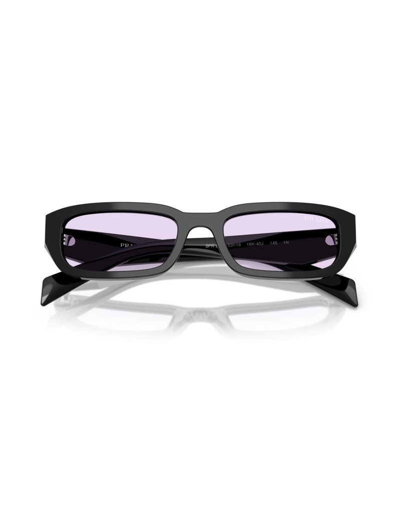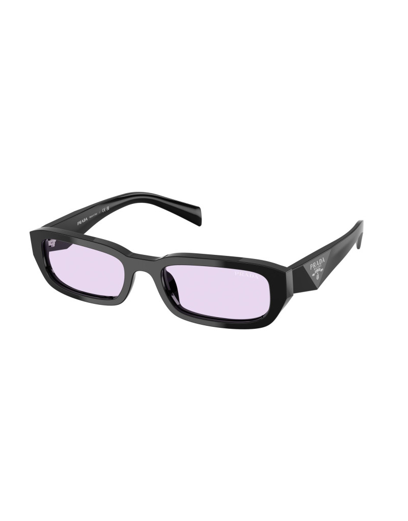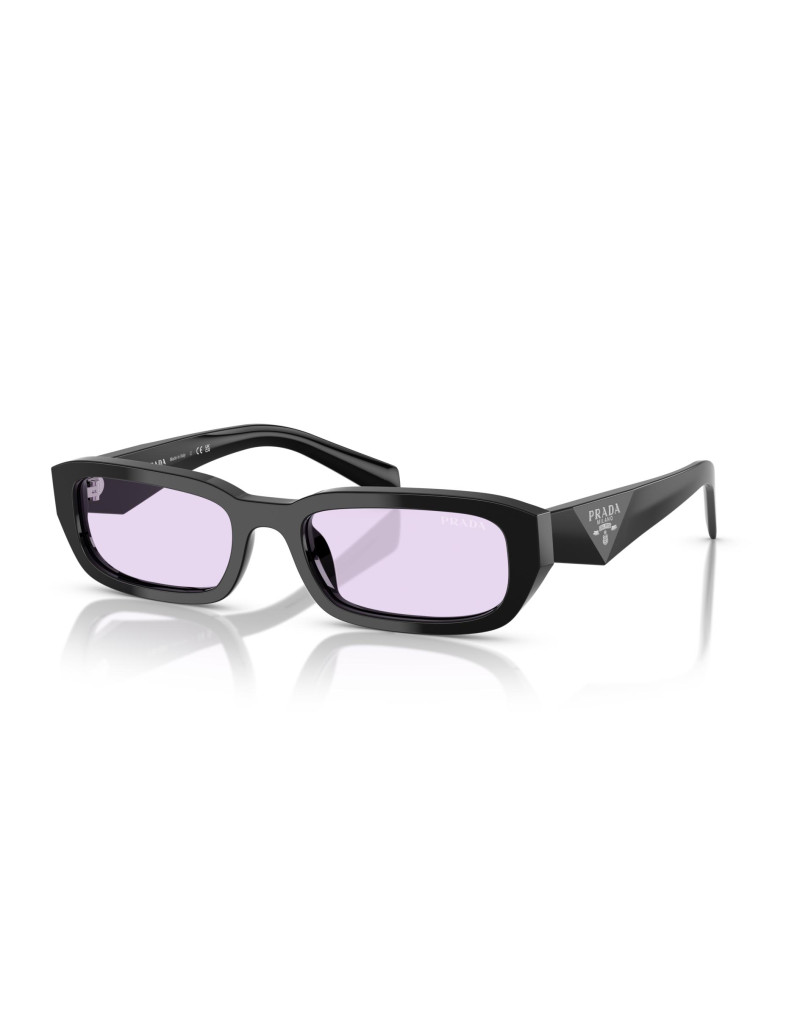 Occhiali da sole Prada da donna in acetato nero lucido e lenti viola chiaro. Un modello dal design lineare e moderno dalla forma irregolare, arricchito dall’iconico logo Prada sulle aste. Un accessorio che si adatta ad ogni forma di volto, per uno stile glamour e alla moda.