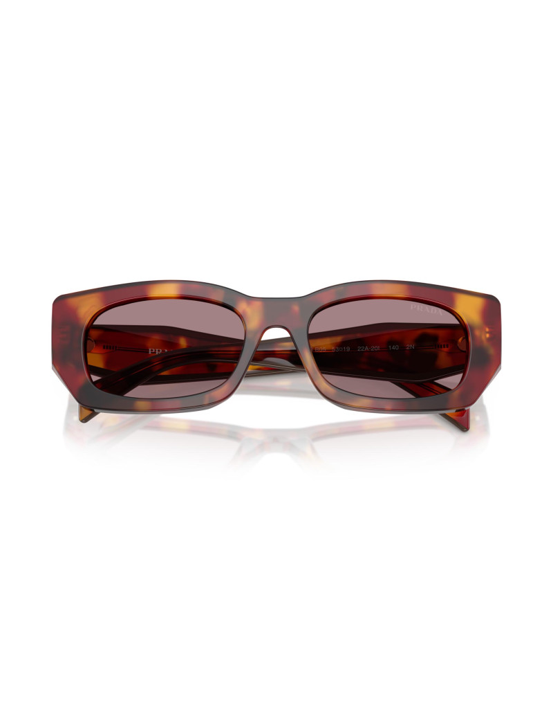 Occhiali da sole Prada da donna con montatura in acetato turchese poppy e lenti marroni. Un design geometrico dalle linee semplici e dalla forma rettangolare con la classica firma Prada sulle aste. Un modello che conferisce uno stile unico ad ogni look.