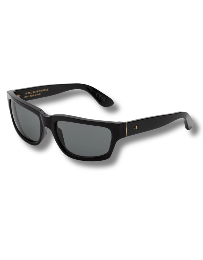 Occhiali da sole Retrosuperfuture Thelonius trasforma una classica montatura in acetato in un modello semi avvolgente di ispirazione sportiva. Con la sua caratteristica struttura robusta in acetato nero lucido, questa montatura si presta ad uno stile classico e street ed è arricchita da lenti Zeiss extra black.