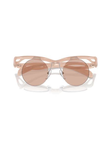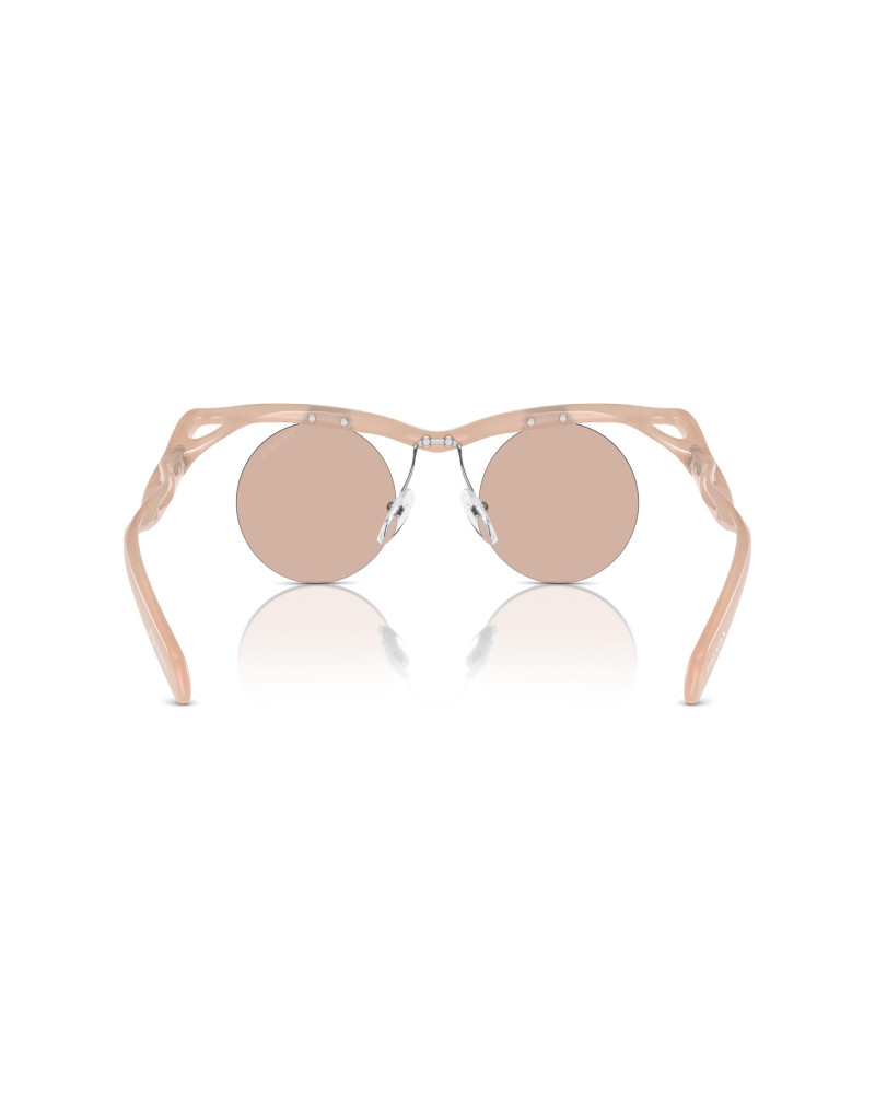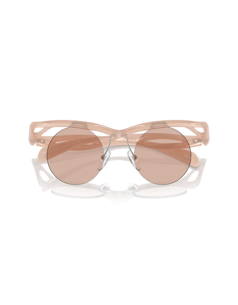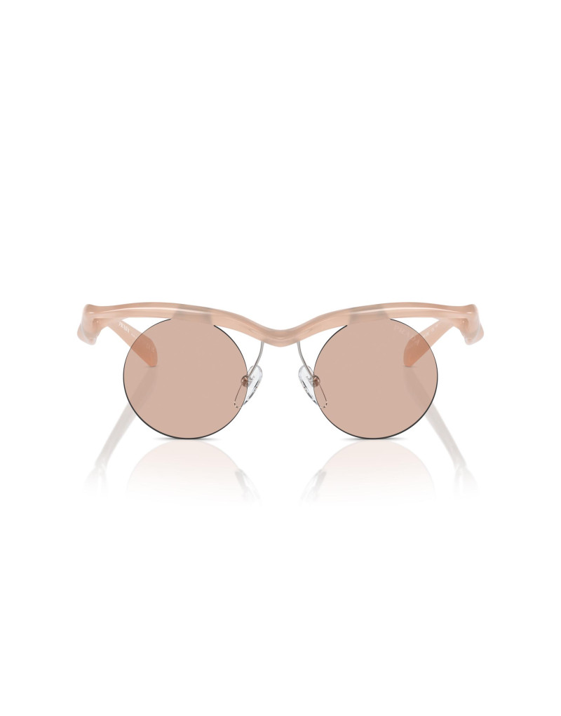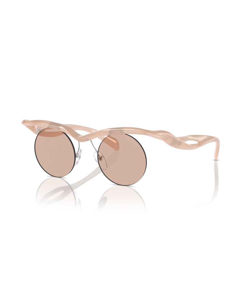 Occhiale da sole Prada, modello dal design accattivante ed iconico. Sopraciliare in acetato color rosa opalino, lenti rotonde anch’esse rosa. Modello molto glamour per un look che non passa inosservato.