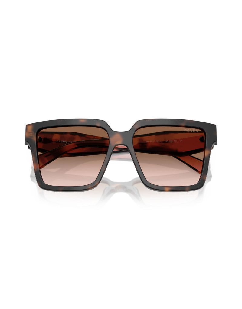 Occhiali da Sole Prada in acetato lucido, quadrati ampi, che si adattano ad ogni tipo di volto. Un modello ultra glamour per uno stile raffinato e audace. Lenti sfumate 100% protezione UV per il massimo comfort visivo.