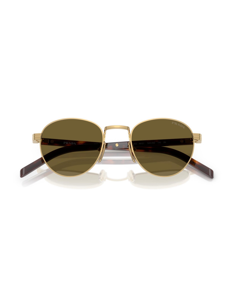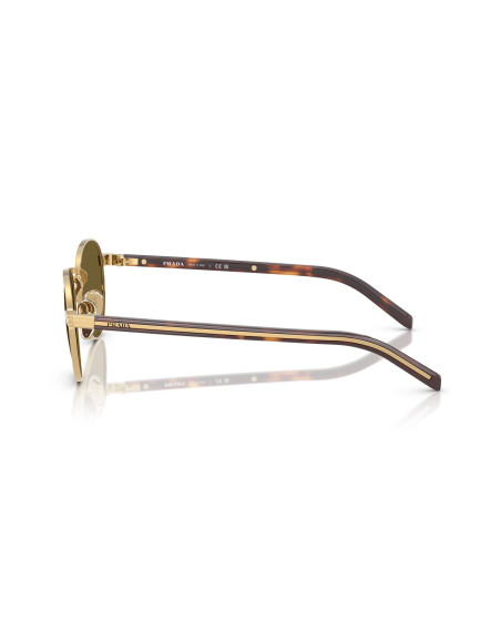 Occhiali da sole Prada da donna che presentano montature in metallo sottile abbinate a aste in acetato, arricchite da una placca allungata, disponibili in una varietà di eleganti combinazioni di colori.
