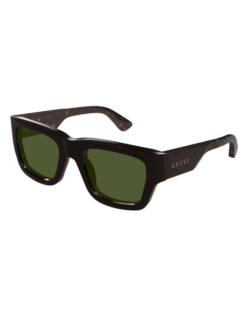 Occhiali da sole Gucci uomo: Montatura in acetato con aste bistrato colorate, che richiamano l'iconico dettaglio Web, simbolo di tradizione e stile. La forma, intramontabile e versatile, aggiunge un tocco di eleganza al design. Il logo con la scritta Gucci è presente sulle aste, come segno distintivo di classe. La palette cromatica, commerciale e alla moda, offre almeno due combinazioni di colore, perfette per ogni occasione e look.