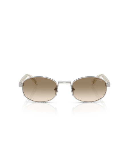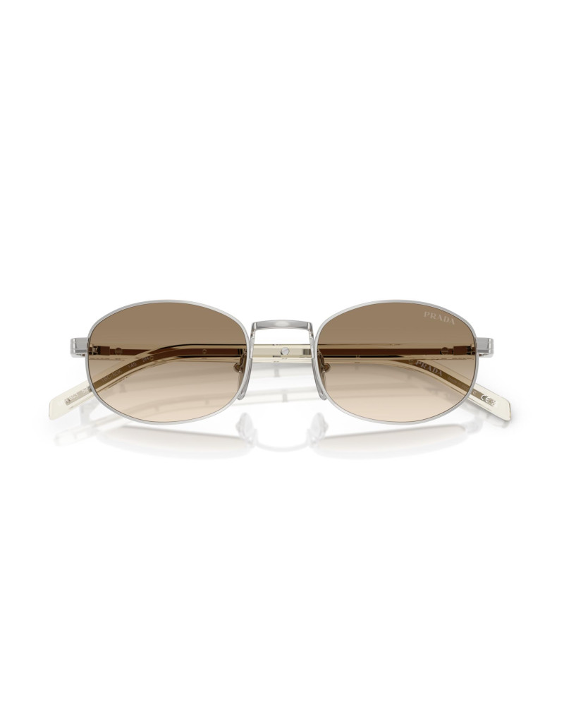 Questi occhiali da sole stretti e ovali riflettono l'eleganza e la modernità tipiche di Prada. Per la prima volta nella linea femminile, presentano il design Iconic Plaque sulle astine, con il logo inciso in modo discreto. La combinazione armoniosa di colori tra lenti, metallo e acetato dona un aspetto sofisticato e raffinato.