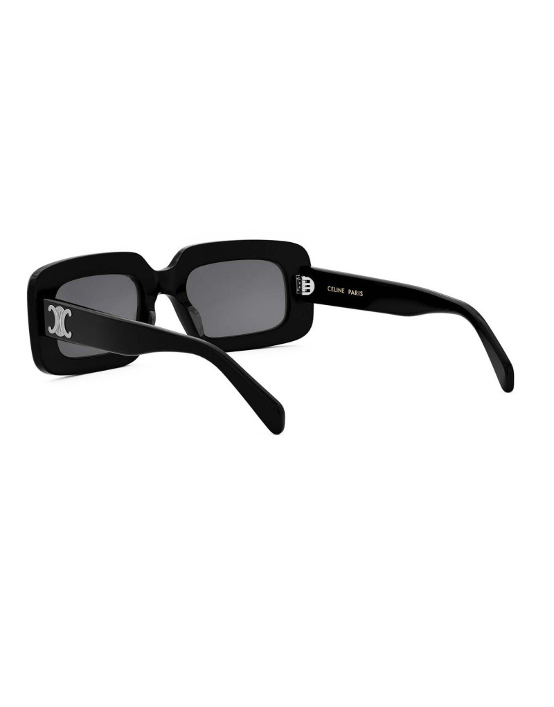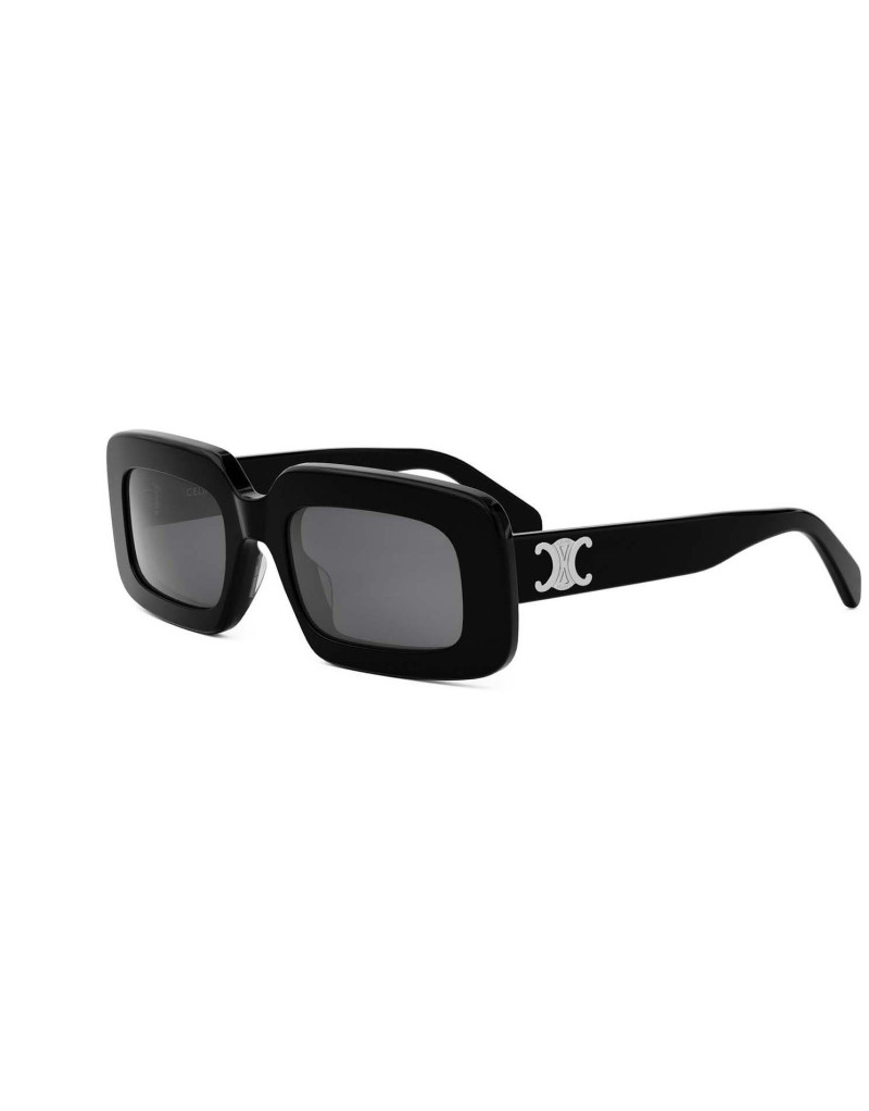 Occhiali da sole Celine con montatura in acetato nero traslucido. Un nuovo modello della maison, dalla forma rettangolare, per uno stile moderno e raffinato.