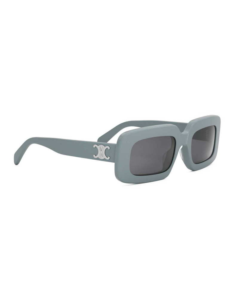 Occhiali da sole Celine con montatura in acetato grigio traslucido. Un nuovo modello della maison, dalla forma rettangolare, per uno stile moderno e raffinato.