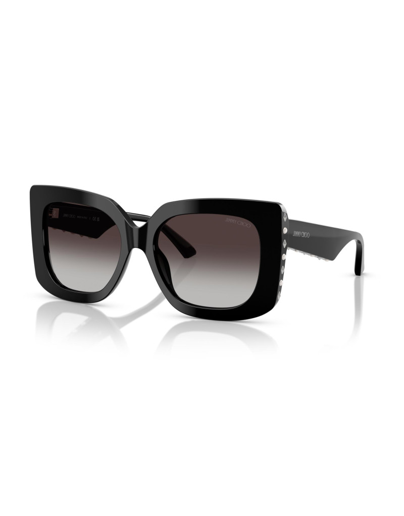 Occhiali da sole Jimmy Choo con una forma farfalla che esprime audacia e sofisticatezza. Questo modello da donna si distingue per la sua silhouette d'impatto, impreziosita da dettagli raffinati come le perle bianche e le borchie in metallo, che aggiungono un tocco di lusso e originalità. Il frontale in acetato, con la sua forma a farfalla, è arricchito da elementi decorativi esclusivi, mentre il logo JC è inciso a laser sulla cerniera personalizzata. Le aste, anch'esse decorate con perle e borchie, sono un ulteriore segno distintivo di eleganza. Questo modello è l'accessorio ideale per chi cerca un look audace e raffinato, perfetto per completare ogni outfit con un tocco di classe.