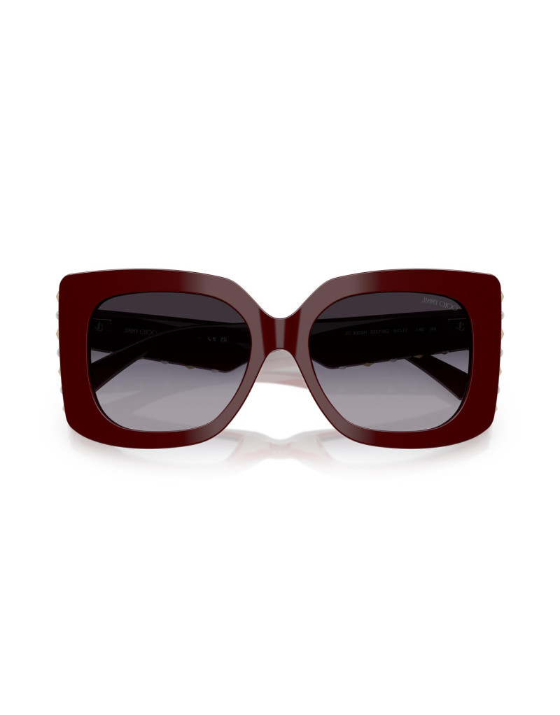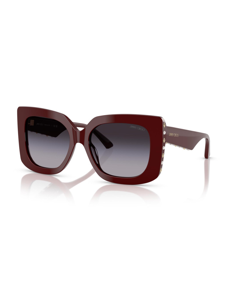 Occhiali da sole Jimmy Choo con una forma farfalla che esprime audacia e sofisticatezza. Questo modello da donna si distingue per la sua silhouette d'impatto, impreziosita da dettagli raffinati come le perle bianche e le borchie in metallo, che aggiungono un tocco di lusso e originalità. Il frontale in acetato, con la sua forma a farfalla, è arricchito da elementi decorativi esclusivi, mentre il logo JC è inciso a laser sulla cerniera personalizzata. Le aste, anch'esse decorate con perle e borchie, sono un ulteriore segno distintivo di eleganza. Questo modello è l'accessorio ideale per chi cerca un look audace e raffinato, perfetto per completare ogni outfit con un tocco di classe.