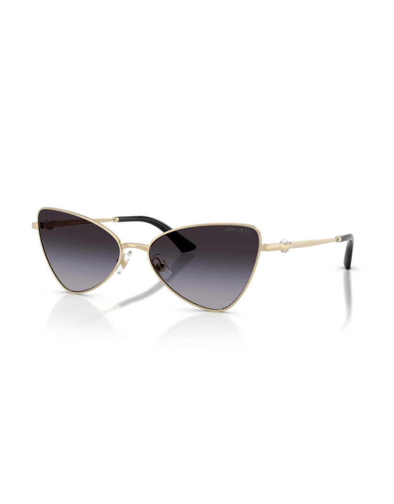 Occhiali da sole Jimmy Choo per donna, con una forma cat-eye che conferisce un tocco di originalità e stile unico. Realizzati con materiali di alta qualità, questi occhiali presentano una colorazione esclusiva che aggiunge un elemento di lusso e raffinatezza al design innovativo. La montatura in metallo è perfetta per chi cerca un look distintivo, capace di catturare l'attenzione con eleganza. Questi occhiali sono ideali per la donna che vuole esprimere la propria personalità con un accessorio solare e sofisticato, senza rinunciare alla qualità artigianale e alla funzionalità.