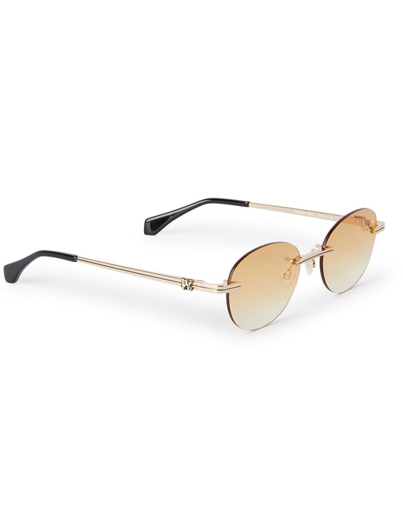 Occhiali Palm Angels CRYSTAL, un minimalismo audace che incontra lo spirito luxury del brand. Caratterizzati da una montatura invisibile e lenti ovali colorate, questi occhiali da sole esprimono eleganza contemporanea. Il ponte e le aste in metallo dorato, impreziosite dalla decorazione Monogram ai lati, aggiungono un tocco distintivo, mentre le lenti arancioni sfumate regalano un’allure fresca e sofisticata.