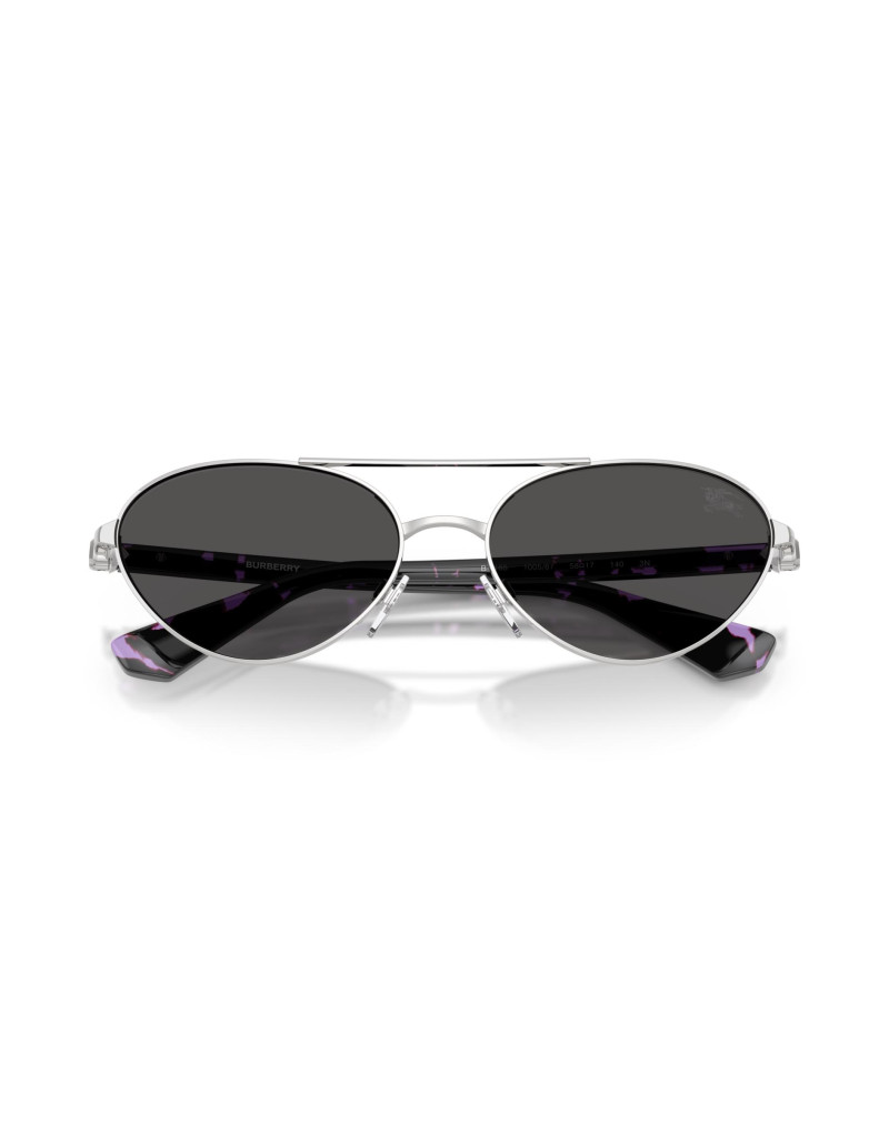 Occhiali da sole Burberry della linea Metal Shield, che uniscono l'eleganza intramontabile delle montature metalliche a un innovativo meccanismo a cerniera a scudo, ispirato al leggendario Equestrian Knight Design del marchio. Questi occhiali da donna, caratterizzati da dettagli raffinati, presentano le astine in acetato, impreziosite da dettagli che richiamano l'eredità Burberry, completano il design con un tocco di classe e tradizione. Un perfetto equilibrio tra innovazione e il ricco patrimonio del marchio, per uno stile senza tempo.