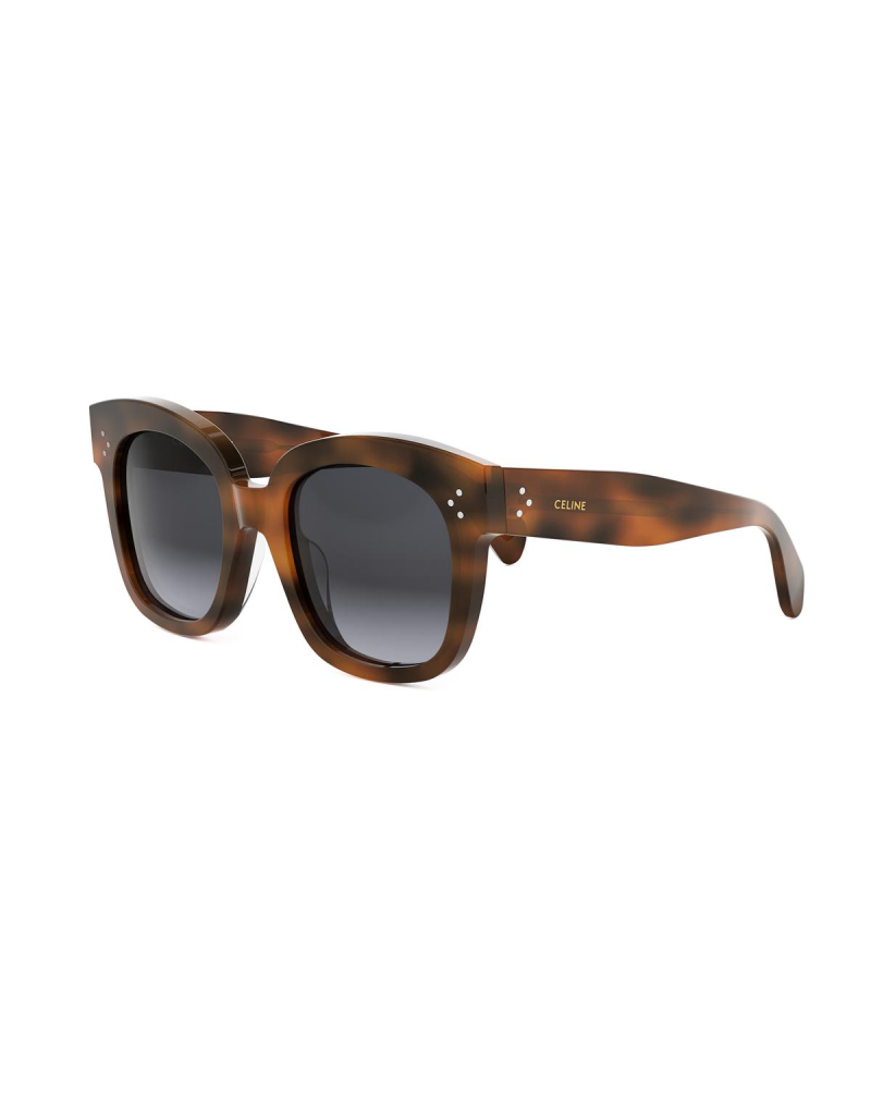 Occhiali da sole Celine con montatura in acetato lucido havana scuro. Dal design sinuoso in un’intrigante forma squadrata e lente grigia sfumata. Un accessorio unico per un look originale.