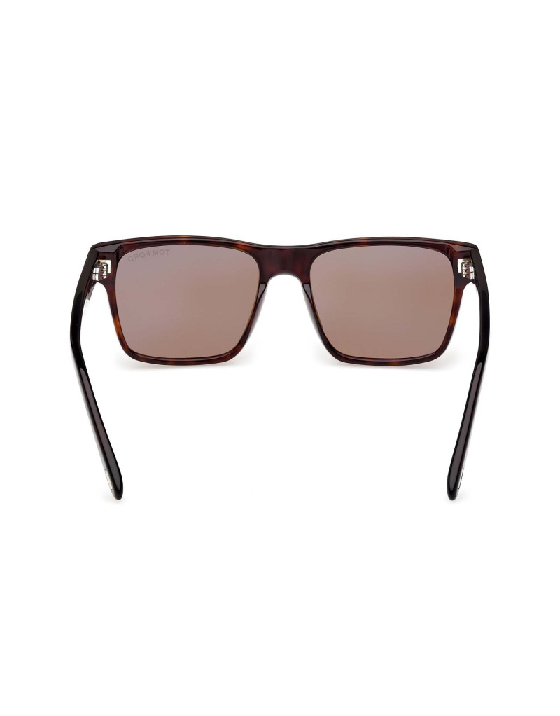 Gli occhiali da sole Tom Ford FT1205 52E presentano una montatura quadrata in acetato avana scuro con lenti marroni, caratterizzati dal dettaglio iconico "T" sulle aste. Questo modello offre uno stile sofisticato e versatile, adatto a diverse forme del viso.
