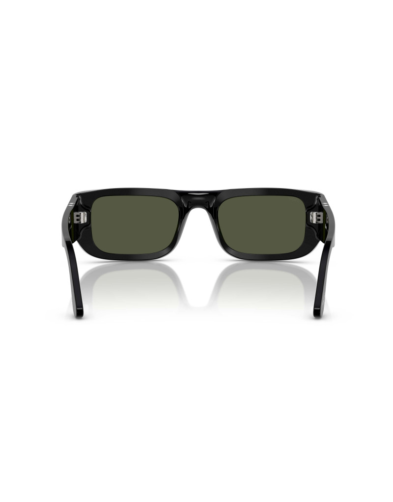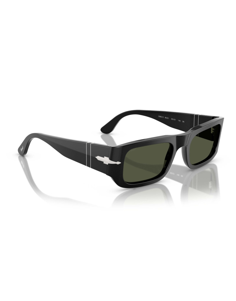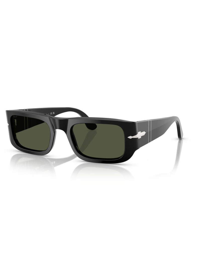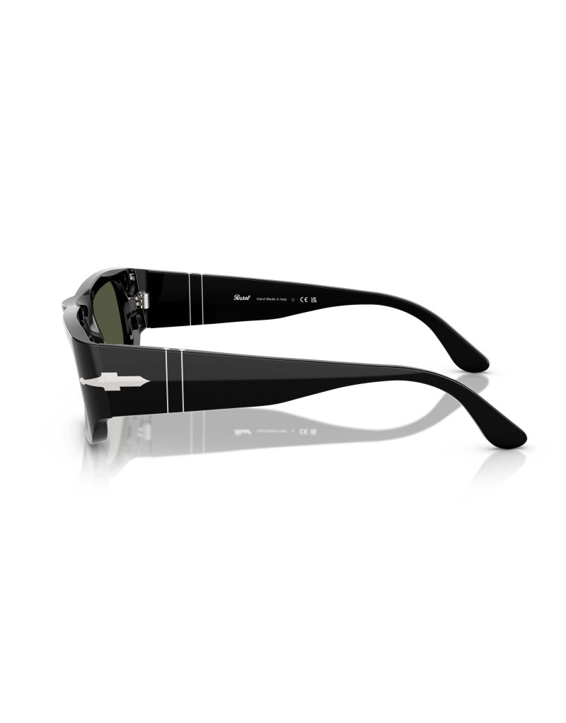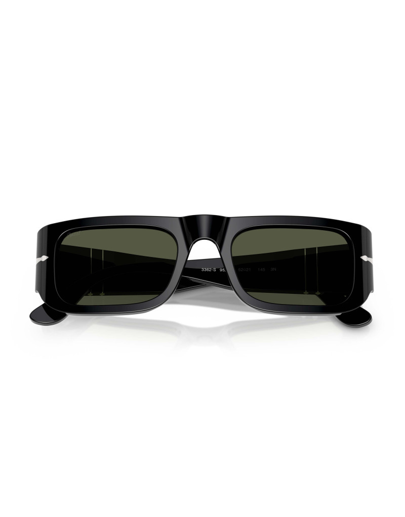 Gli occhiali da sole Persol PO3362S 95/31 combinano eleganza e funzionalità in un design iconico. La montatura in acetato color Nero ospita lenti in vetro cristallo di colore Verde, offrendo una visione nitida e una protezione UV eccellente. Questo modello presenta una forma rettangolare con linee moderne e il caratteristico ponte a serratura, conferendo un look elegante e senza tempo.