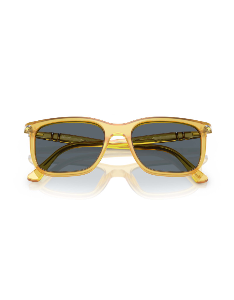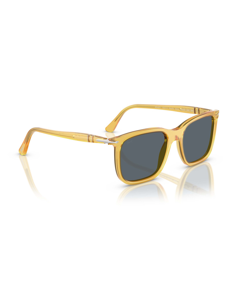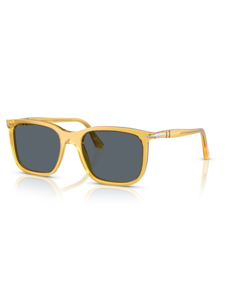 Gli occhiali da sole Persol PO3357S 204/R5 uniscono un design iconico a una qualità artigianale senza pari. La montatura in acetato color miele traslucido ospita lenti in vetro cristallo di colore blu, offrendo una visione nitida e una protezione UV eccellente. Questo modello presenta una forma squadrata con linee moderne e il caratteristico ponte a serratura, conferendo un look elegante e senza tempo.