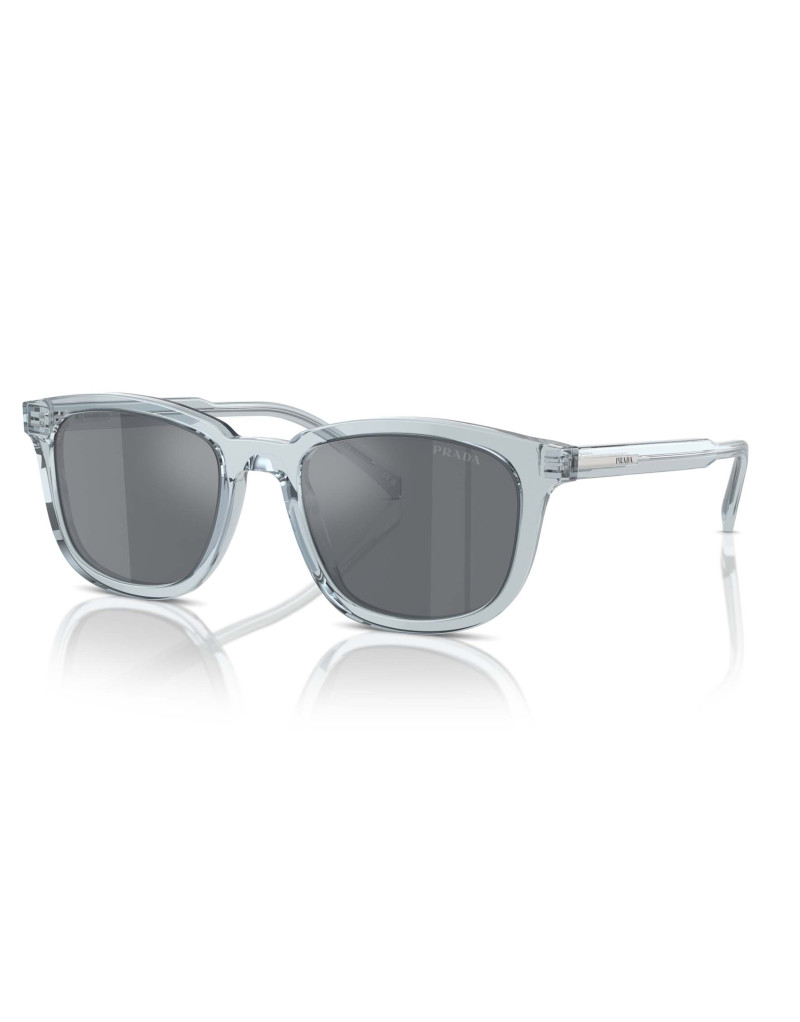 Gli occhiali da sole Prada A21S 19T175 offrono un design distintivo e contemporaneo, ideale per chi cerca un accessorio elegante e versatile. La montatura, realizzata in acetato trasparente azzurro, presenta una forma squadrata che conferisce un aspetto moderno e raffinato. Le lenti grigio scuro non solo proteggono efficacemente dai raggi UV, ma aggiungono anche un tocco di stile unico.