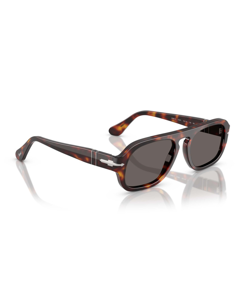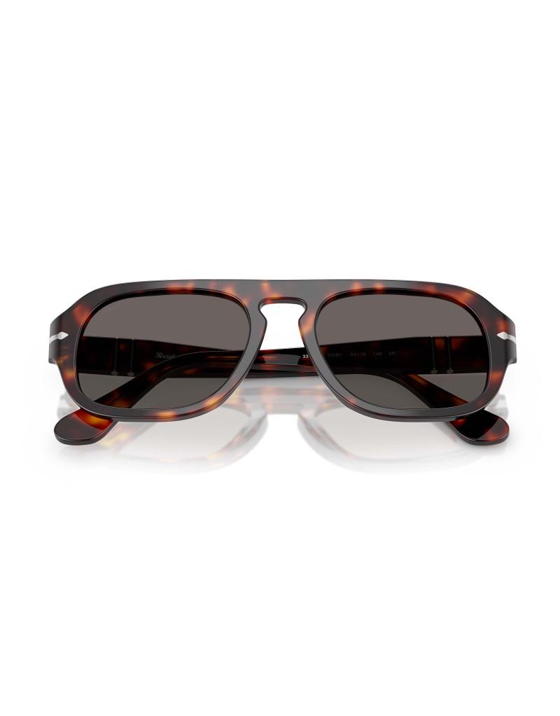 Gli occhiali da sole Persol PO3369S 24/B1 uniscono un design iconico a una qualità artigianale senza pari. La montatura in acetato color Havana ospita lenti in vetro minerale grigio scuro, offrendo una visione nitida e una protezione UV eccellente. Questo modello presenta una forma aviator con linee morbide e il caratteristico ponte a serratura, conferendo un look elegante e senza tempo.