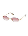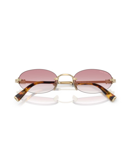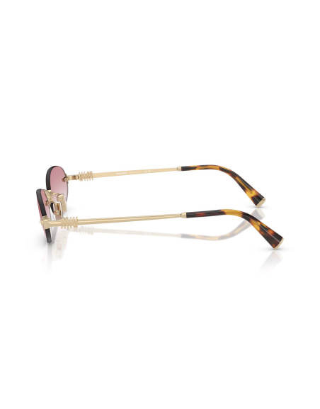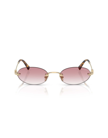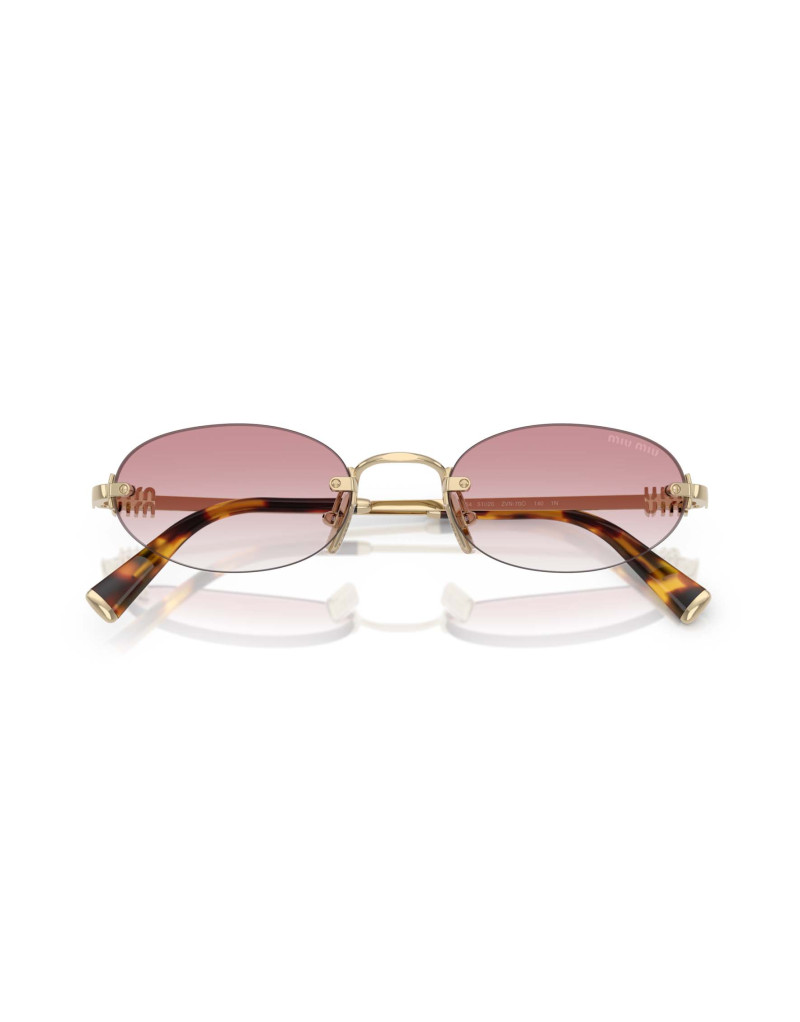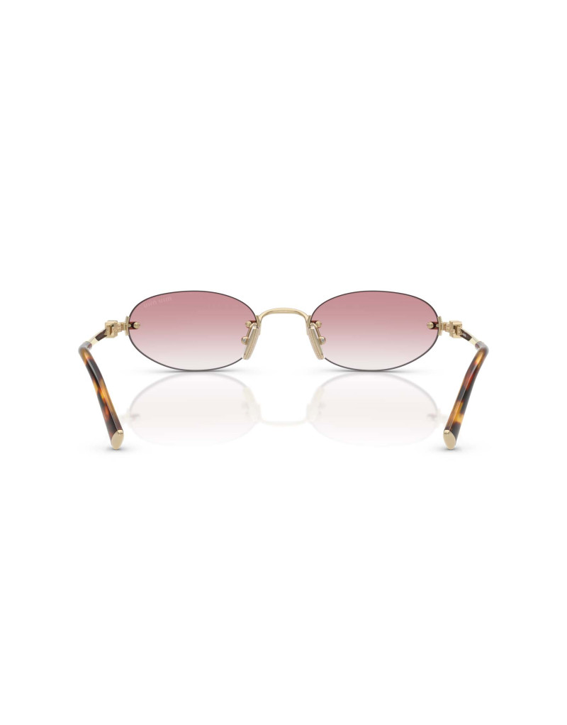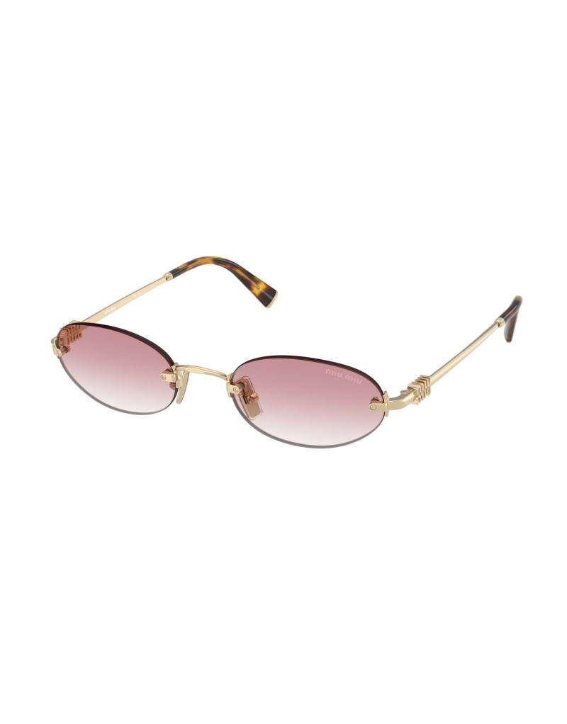 Occhiali da sole Miu Miu da donna, un modello con lenti rosa di forma ovale. Il marchio introduce una forma rimless riunendosi sulle aste con il logo Miu Miu. Un accessorio che completa ogni look con eleganza e stile.
