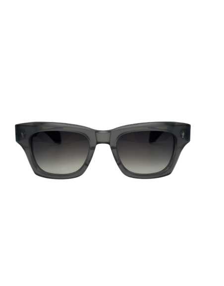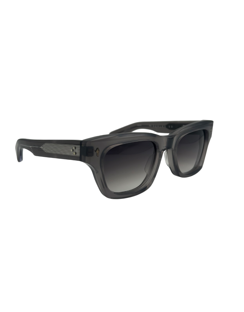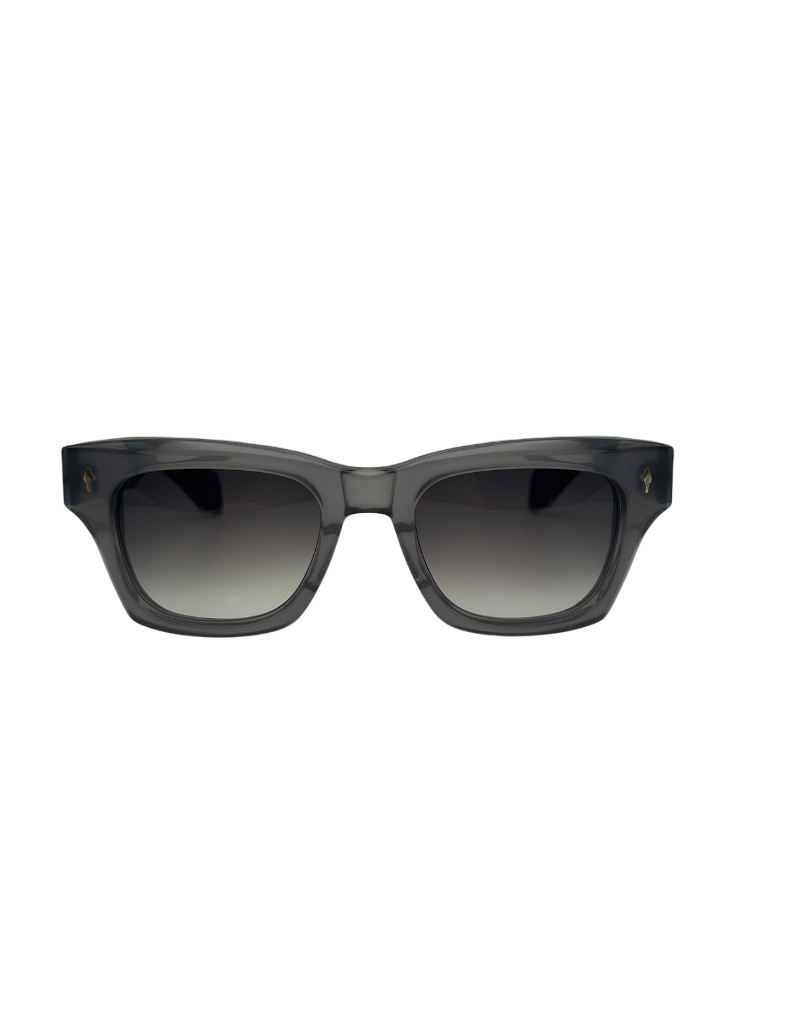Occhiali Jacques Marie Mage Dealan 53 Prime: un tributo al legame viscerale tra l’artista e il proprio sguardo sul mondo, una visione tradotta in forma e materia con la disinvoltura di chi ha vissuto ovunque, senza mai appartenere a un solo luogo. Con richiami marcati all’estetica anni ’60, questi occhiali combinano volumi audaci e linee affusolate in un equilibrio perfetto tra intensità e raffinatezza. La montatura in acetato grigio da 10 mm, scolpita con precisione estrema, avvolge lo sguardo con autorevolezza, mentre le aste laminate nascondono una struttura in metallo prezioso che rivela il proprio valore nei dettagli: l’iconico perno frontale a freccia in argento sterling, l’anima metallica interna, la cerniera a 7 barili e il cammeo tridimensionale inciso, discreto ma inconfondibile.