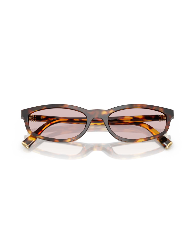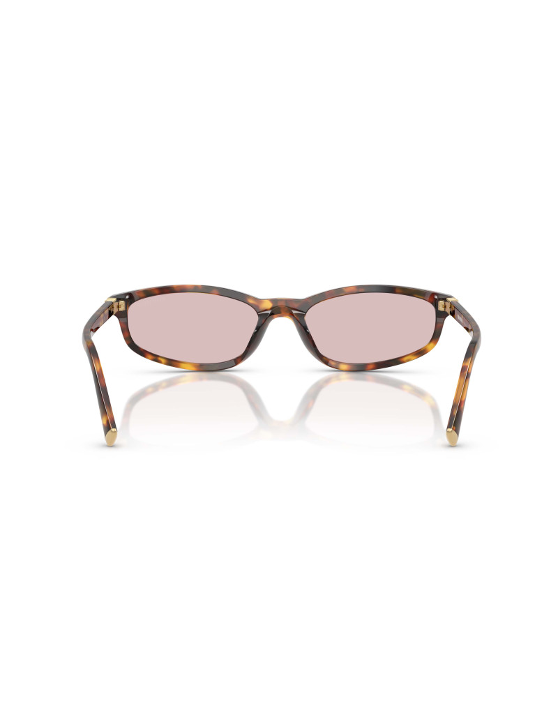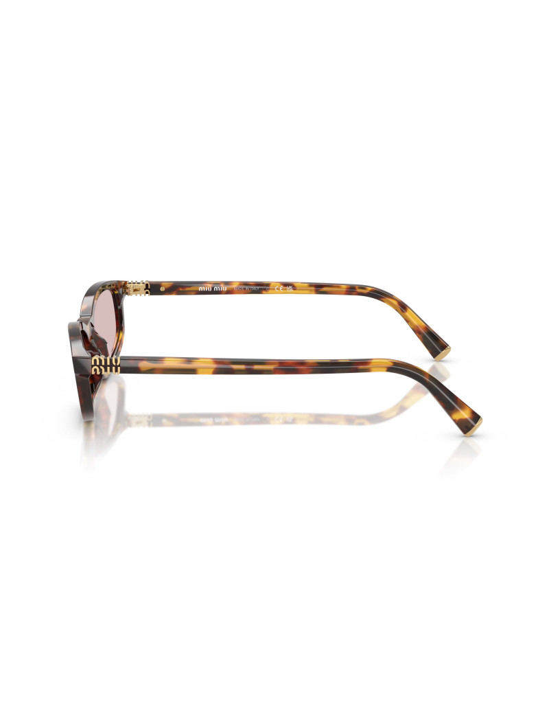 Occhiali da sole Miu Miu da donna con montatura color havana. L'occhiale è pensato per le donne che osano essere diverse; il materiale in acetato conferisce durata e confort, mentre le lenti rosa danno un tocco di colore originale e moderno.