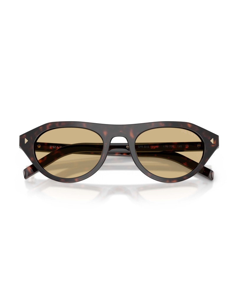 Occhiali da sole Prada B15S 17N70R con montatura in acetato tartarugato e lenti in cristallo marrone chiaro con protezione UV400. Design elegante e contemporaneo, perfetti per un look sofisticato e protezione ottimale dal sole.