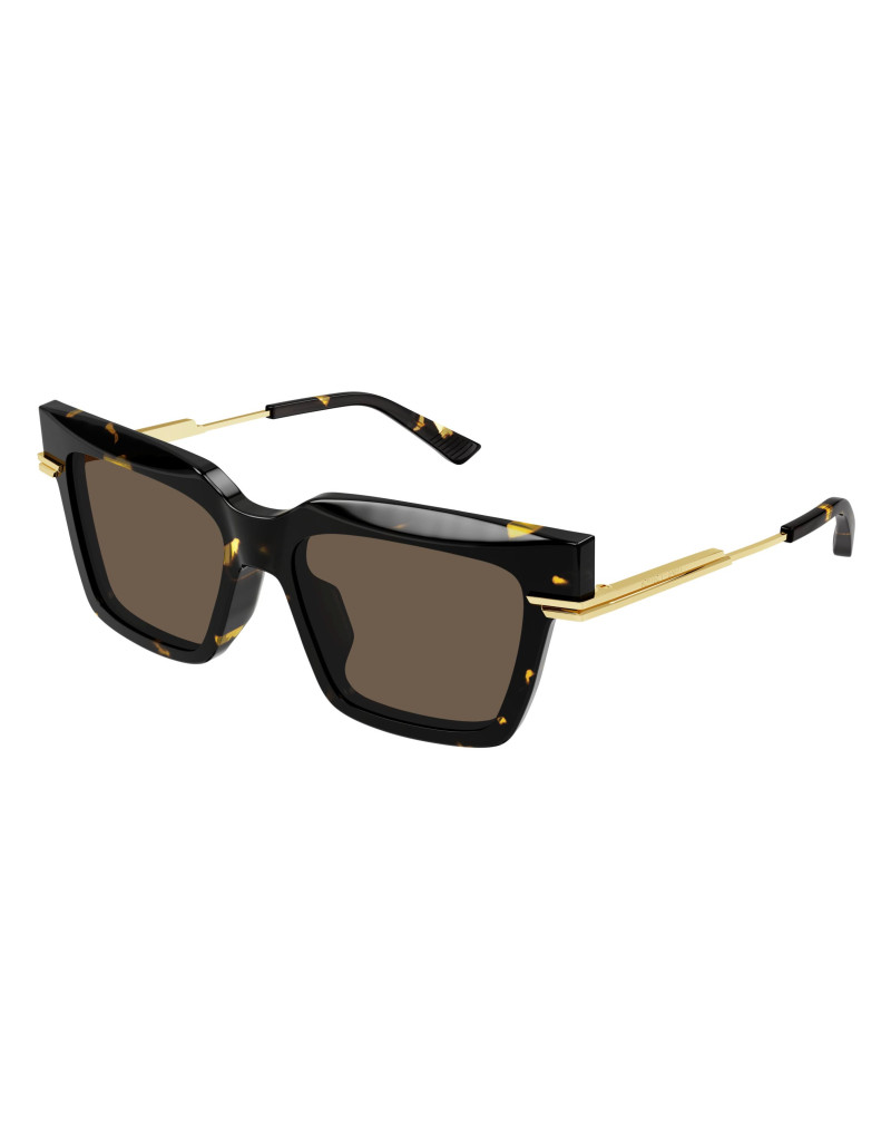 Gli occhiali da sole Bottega Veneta BV1242S combinano un design raffinato con materiali pregiati, incarnando l'eleganza discreta tipica del marchio. La montatura rettangolare è realizzata in acetato riciclato, disponibile in diverse varianti cromatiche. Le aste sottili in metallo, impreziosite dall'iconico motivo a doppia striscia, aggiungono un tocco distintivo al modello. Le lenti in bio-nylon offrono protezione totale dai raggi UVA/UVB, mentre il logo Bottega Veneta inciso sulle aste laterali conferisce un ulteriore elemento di riconoscibilità.