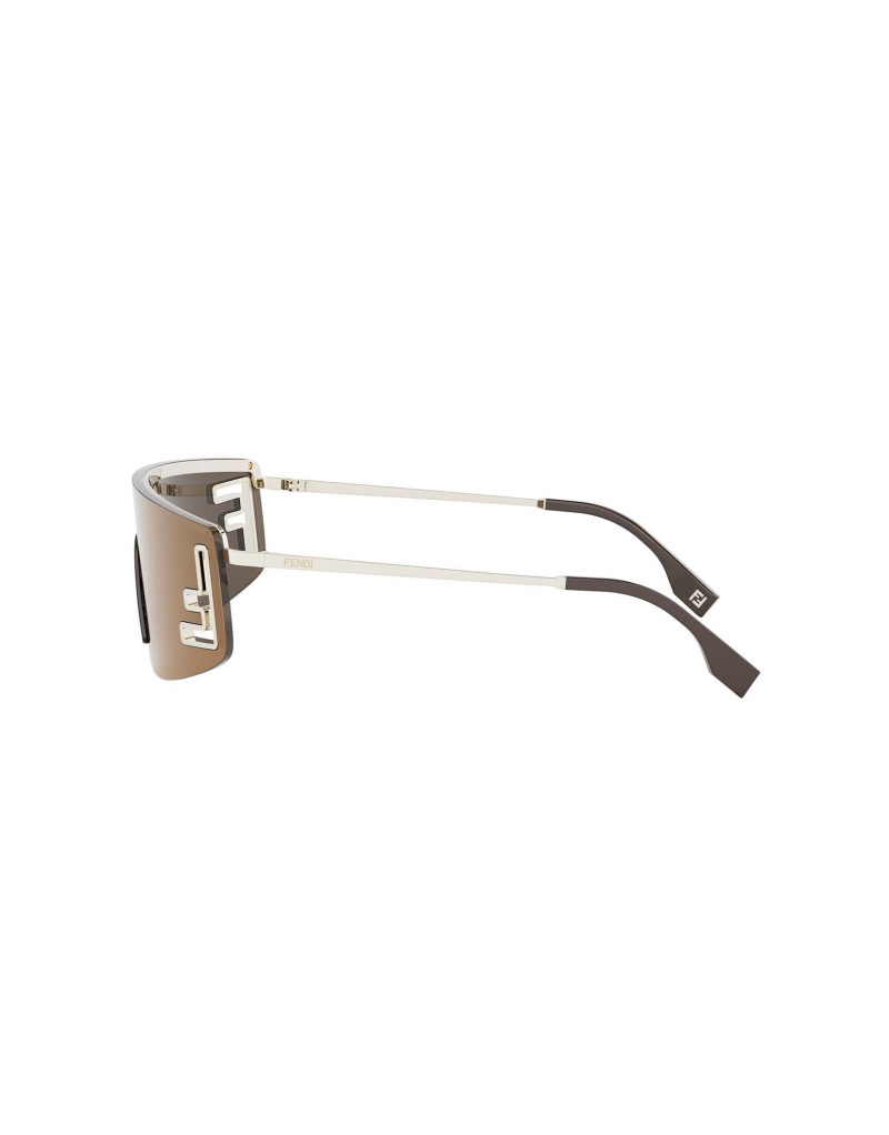 Gli occhiali da sole Fendi FE40168U 32G incarnano l'eleganza contemporanea con un design a mascherina distintivo. La montatura in metallo color oro si abbina a lenti gialle, offrendo una protezione totale dai raggi UVA/UVB. Il logo Fendi Brush, disegnato dall'illustratore Antonio Lopez negli anni '80, impreziosisce le aste, aggiungendo un tocco di stile unico. Ideali per chi cerca un accessorio che fonde moda e funzionalità.