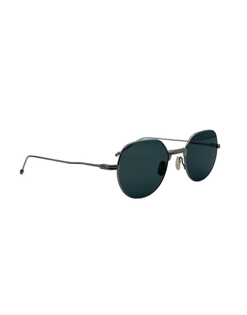 Occhiale da sole di Thom Browne che unisce eleganza senza tempo e carattere deciso. Modello unisex ultra leggero e ipoallergenico in titanio pensato per chi vuole esprimere sicurezza attraverso ogni dettaglio, accessorio ideale per chi ama distinguersi con stile. Realizzato con una placca in titanio, questo occhiale dalla forma rotonda presenta lenti grigie, perfette per un look sofisticato e versatile.