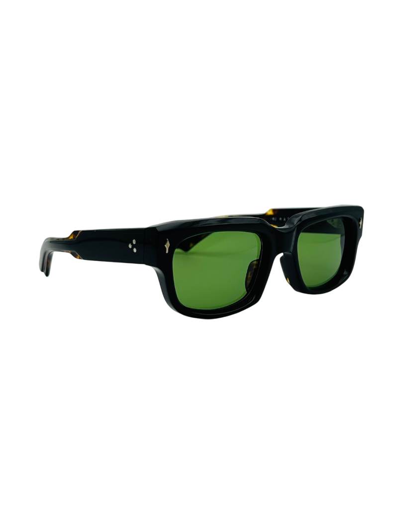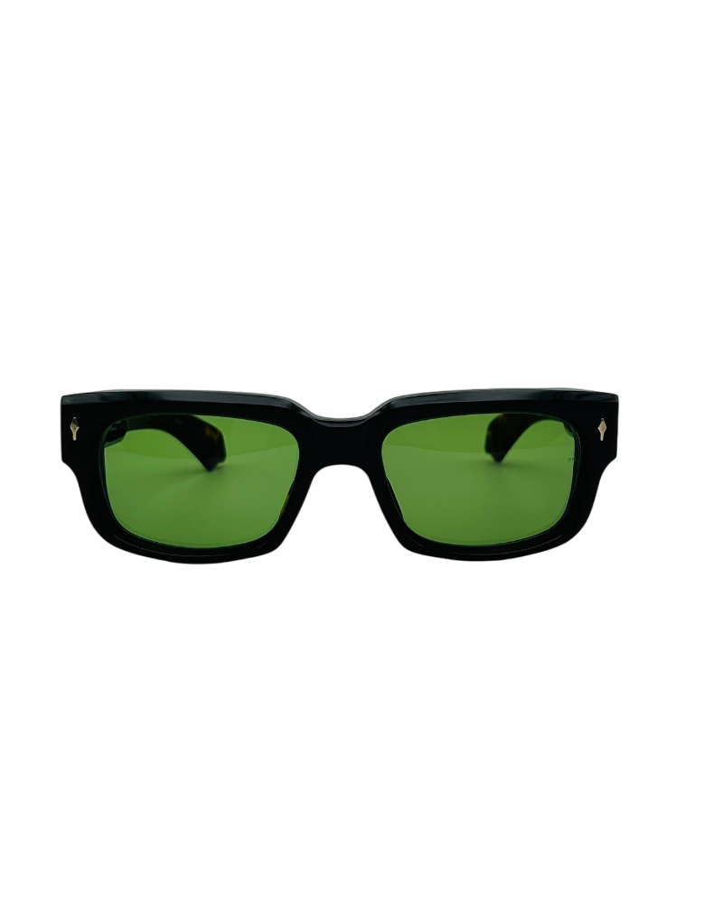 Occhiali da sole Jacques Marie Mage modello Mattei, nella colorazione noir vintage green. Un modello da uomo ispirati agli anni 60', con aste oversize ergonomiche. Un occhiale senza tempo, che unisce eleganza e modernità. La loro forma rettangolare è adatta a tutte le tipologie di visi maschili.
