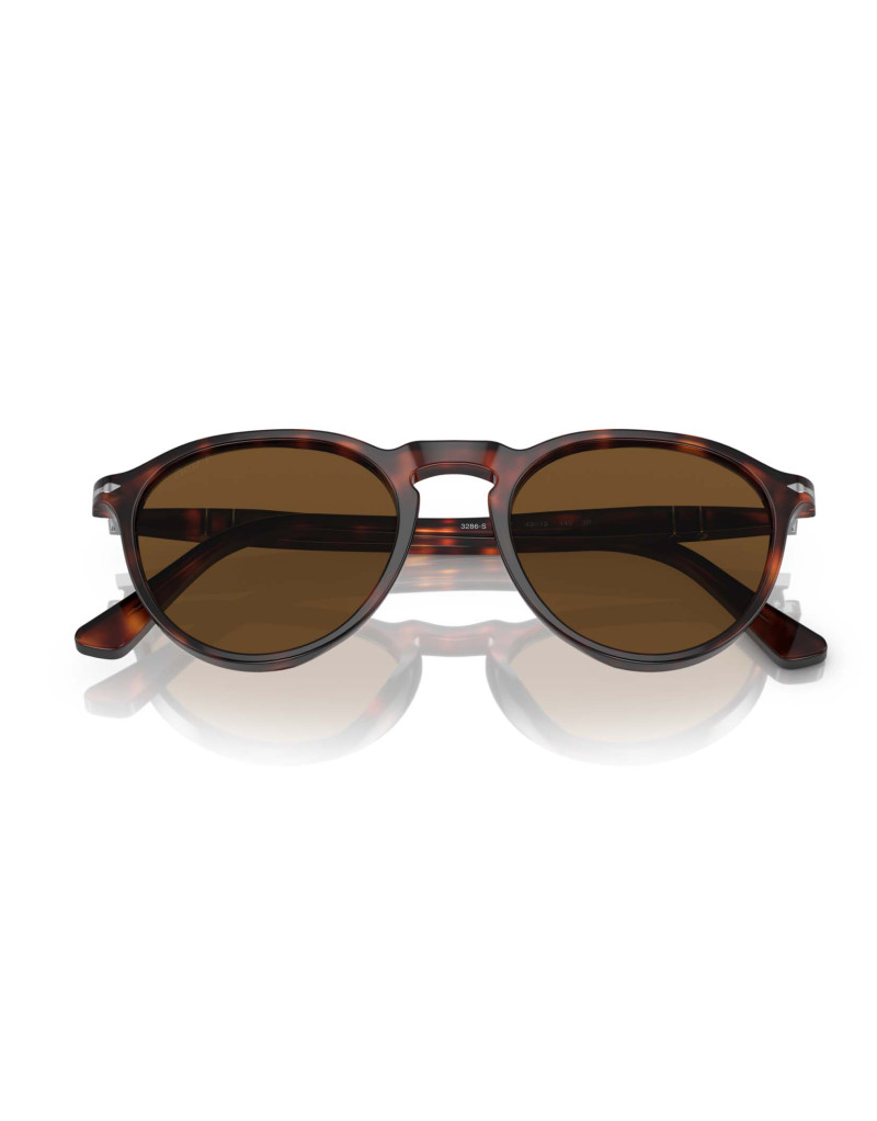 Occhiali da sole Persol 3286s 24/57: il classico design Panthos rivisitato grazie ad una montatura in acetato avana abbinata a lenti marroni polarizzate, per uno stile sofisticato e funzionale.