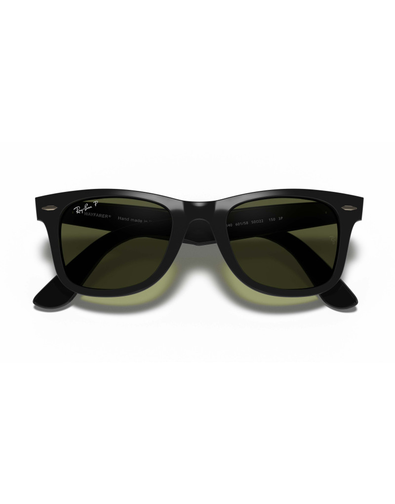 Occhiali da sole Ray-Ban Wayfarer 2140 127771 calibro 50 in acetato nero lucido. Montatura dalla forma squadrata. Lenti in cristallo 100% protezione raggi UV. Lenti polarizzate.