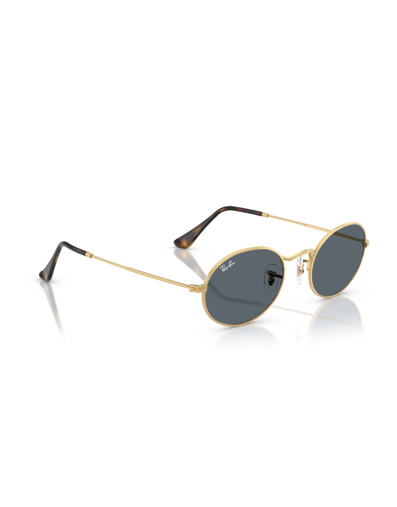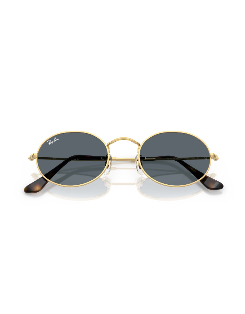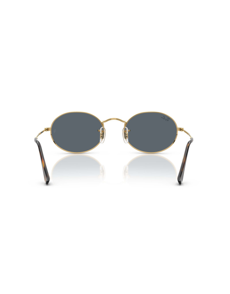 Occhiali da sole Ray-Ban Oval 3547N 001/R5 calibro 51 in metallo oro arista. Montatura dalla forma ovale. Lenti blu in cristallo 100% protezione raggi UV.