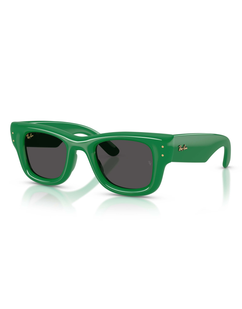 Occhiali da sole Ray-Ban Wayfarer Puffer 4940 683487 calibro 47 in acetato verde lucido. Montatura dalla forma squadrata.