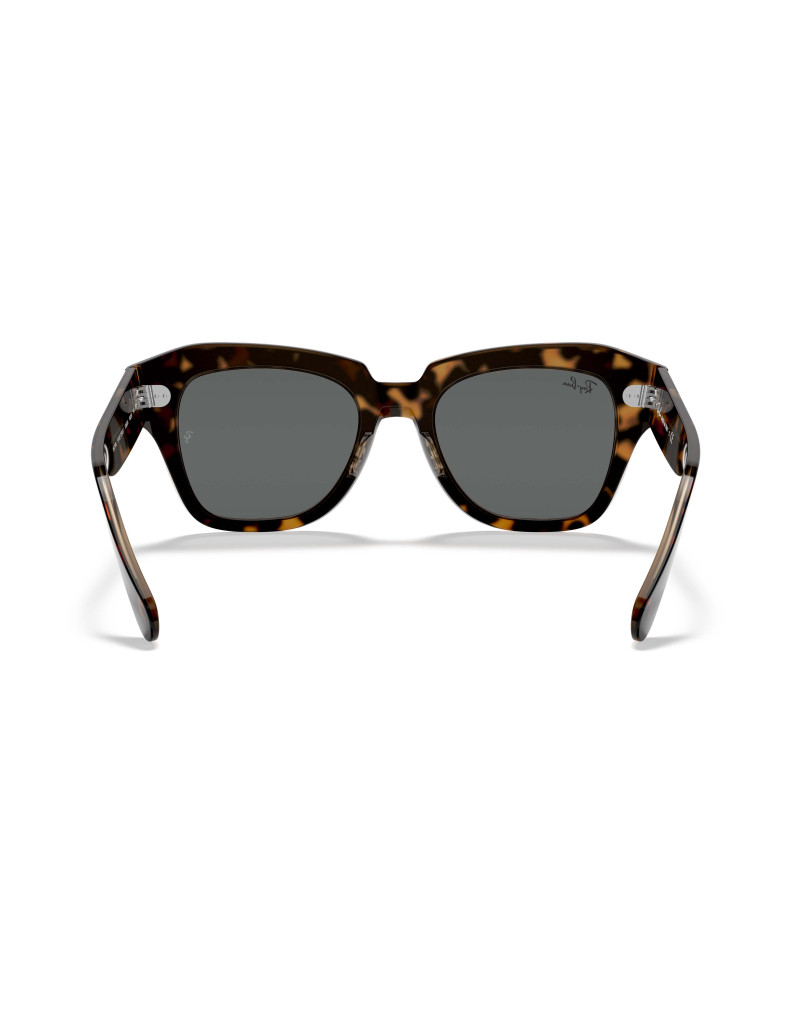Occhiali da sole Ray-Ban State Street 2186 133371 calibro 52 in acetato havana su marrone trasparente lucido. Montatura dalla forma ampia e squadrata. Lenti in cristallo 100% protezione raggi UV.