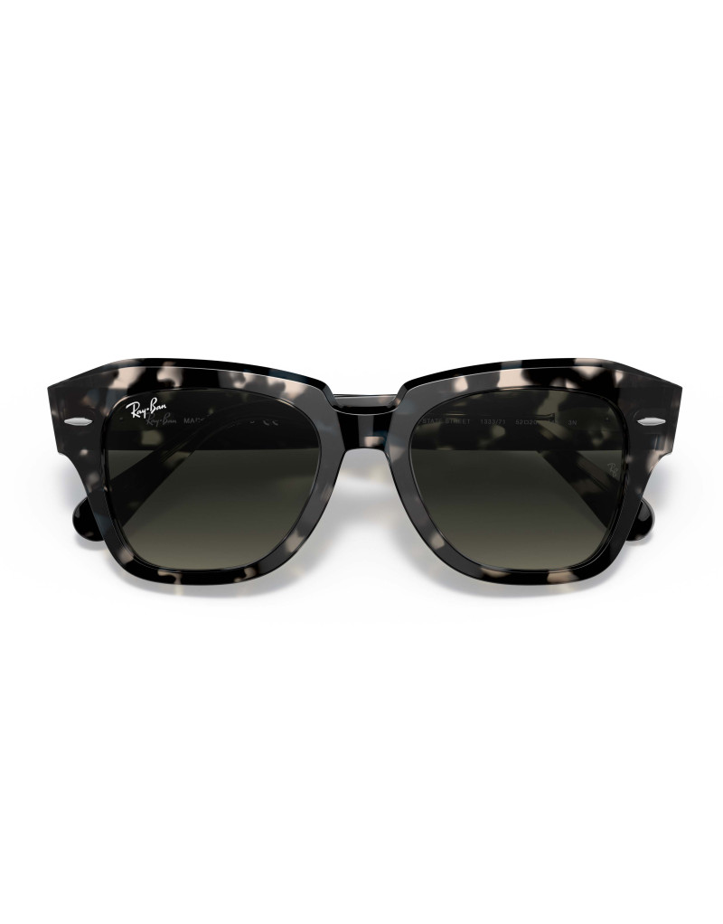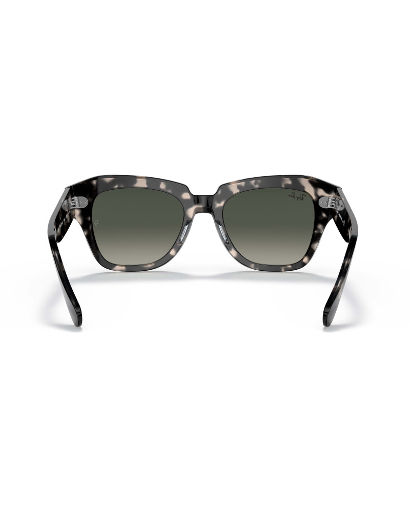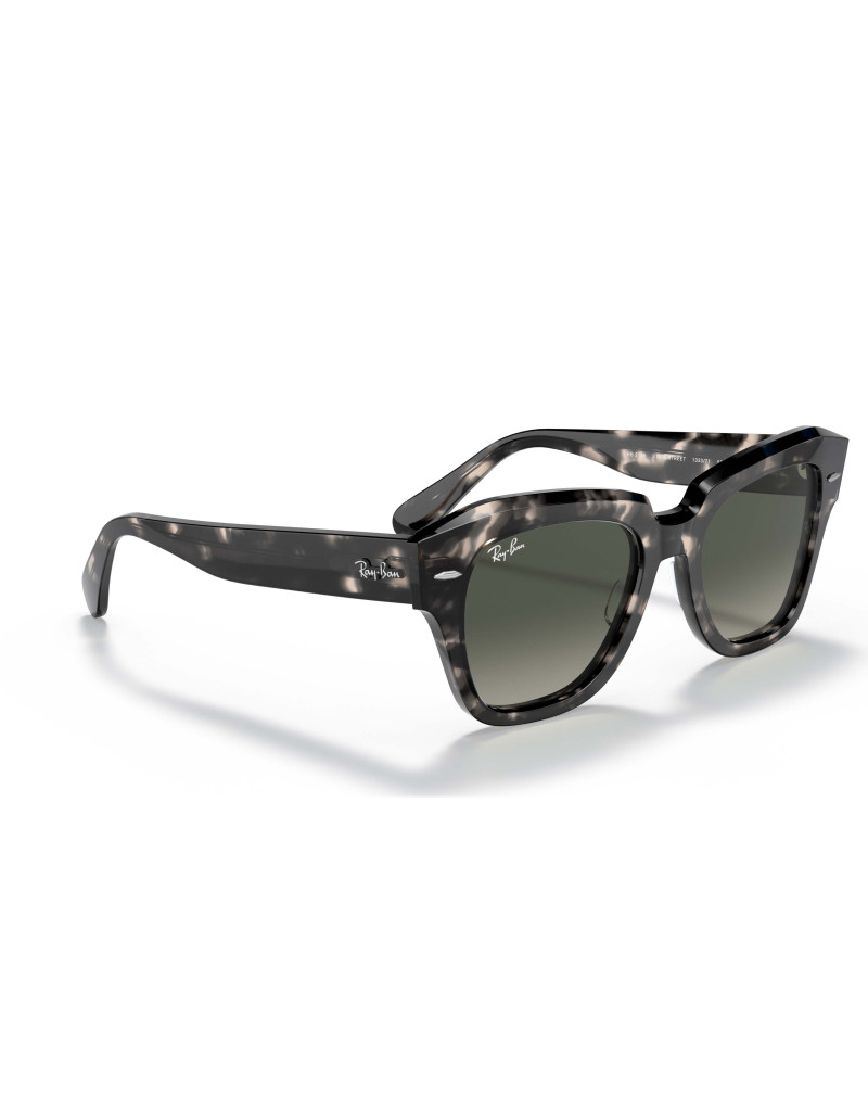 Occhiali da sole Ray-Ban State Street 2186 133371 calibro 49 in acetato havana grigio lucido. Montatura dalla forma ampia e squadrata. Lenti in cristallo 100% protezione raggi UV.