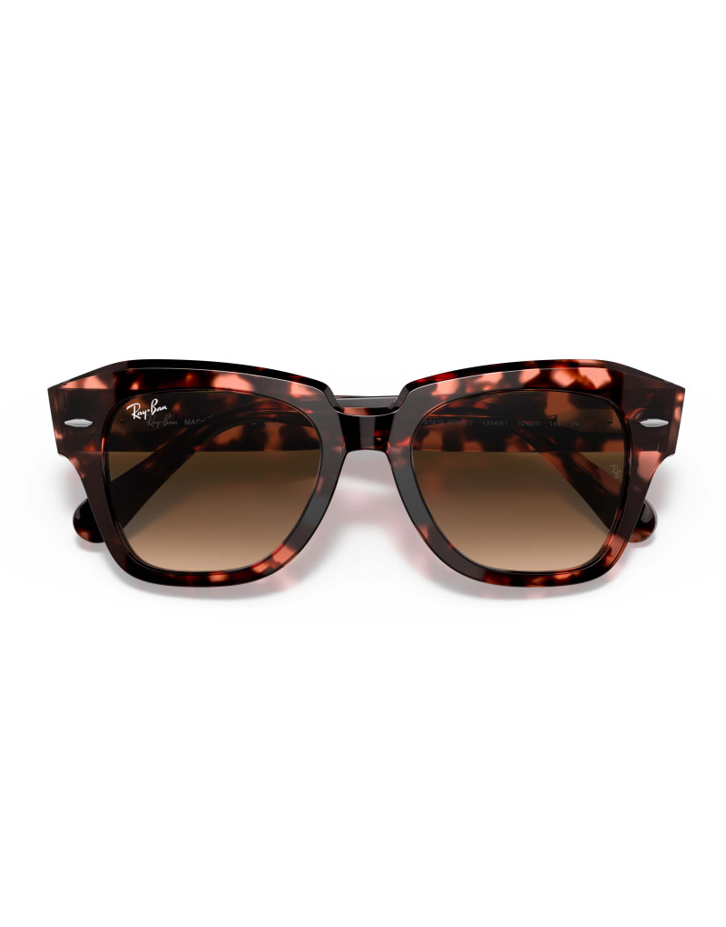 Occhiali da sole Ray-Ban State Street 2186 133451 calibro 49 in acetato havana rosa lucido. Montatura dalla forma ampia e squadrata. Lenti in cristallo 100% protezione raggi UV.