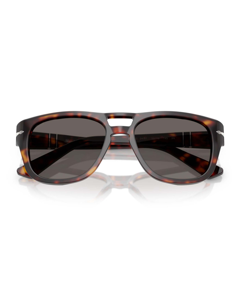 Occhiali da sole Persol 3366s 24/b1, un modello dallo stile contemporaneo e linee definite in acetato tortora havana, un perfetto equilibrio tra eleganza e comfort quotidiano. Le lenti in vetro grigio scuro offrono massima precisione visiva, mentre il filtro UV 400 categoria 3 protegge efficacemente in condizioni di luce intensa. Vestibilità ottimale grazie al ponte alto.