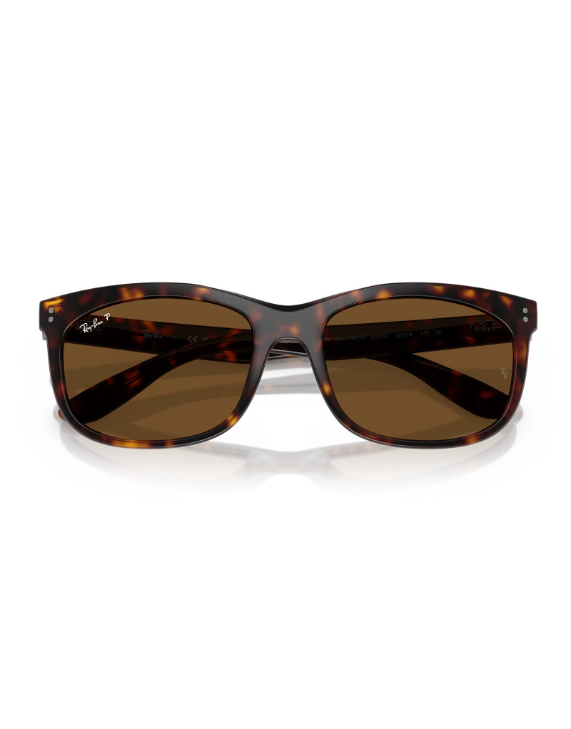 Occhiali da sole Ray‑Ban Balorette RB 2389 902/57: una montatura in tartarugato lucido con lenti in vetro marrone polarizzato. Un perfetto connubio di eleganza, nitidezza visiva e protezione solare. Design rettangolare, ideale per un look moderno con comfort ottico di alto livello.