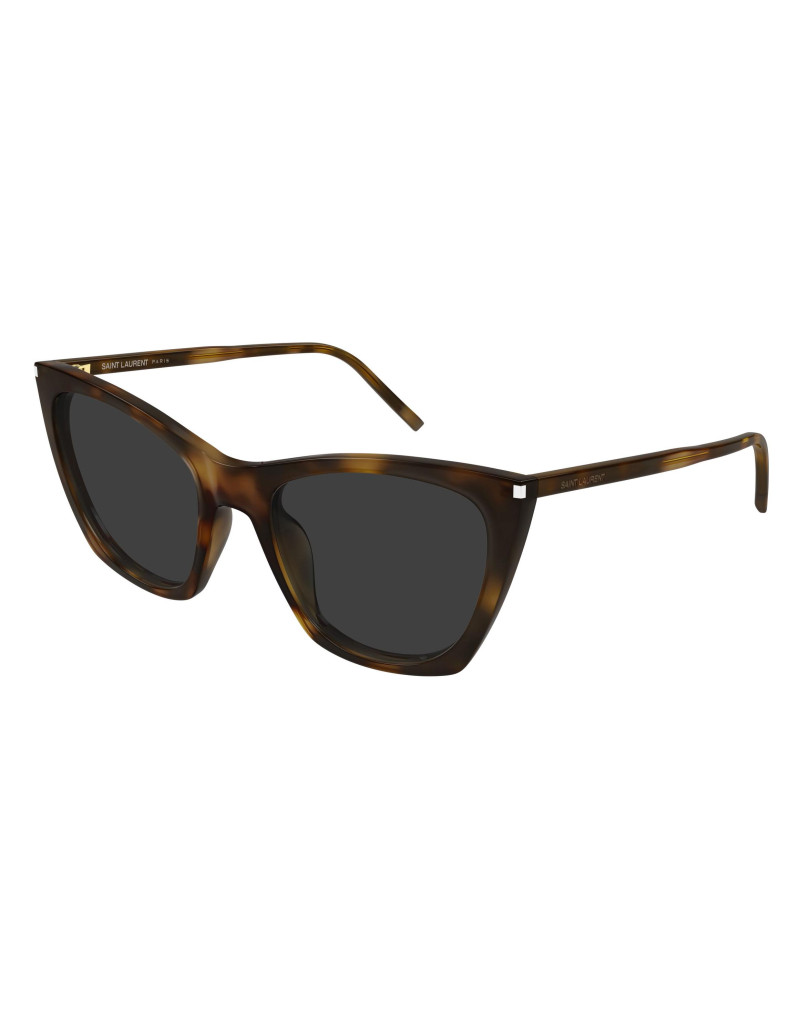 Occhiali da sole Saint Laurent, un elegante modello cat-eye in acetato havana, che unisce stile e raffinatezza. Le linee affilate della forma cat-eye donano un look audace e sofisticato, mentre la montatura in acetato havana aggiunge un tocco di classe senza tempo. Le lenti grigie, oltre a garantire una protezione ottimale dai raggi solari, offrono un contrasto elegante, completando il design di questi occhiali da sole perfetti per un uso quotidiano con un accento di lusso.