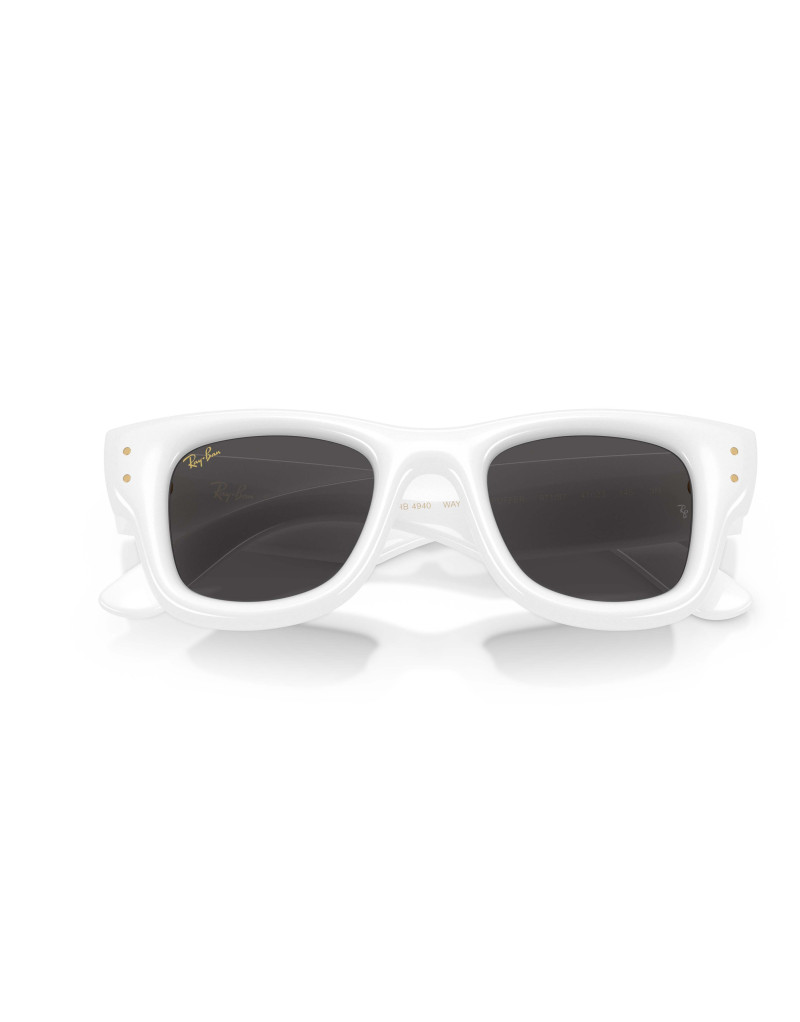 Occhiali da sole Ray-Ban Wayfarer Puffer 4940 671/87 calibro 47 in acetato bianco lucido. Montatura dalla forma squadrata.